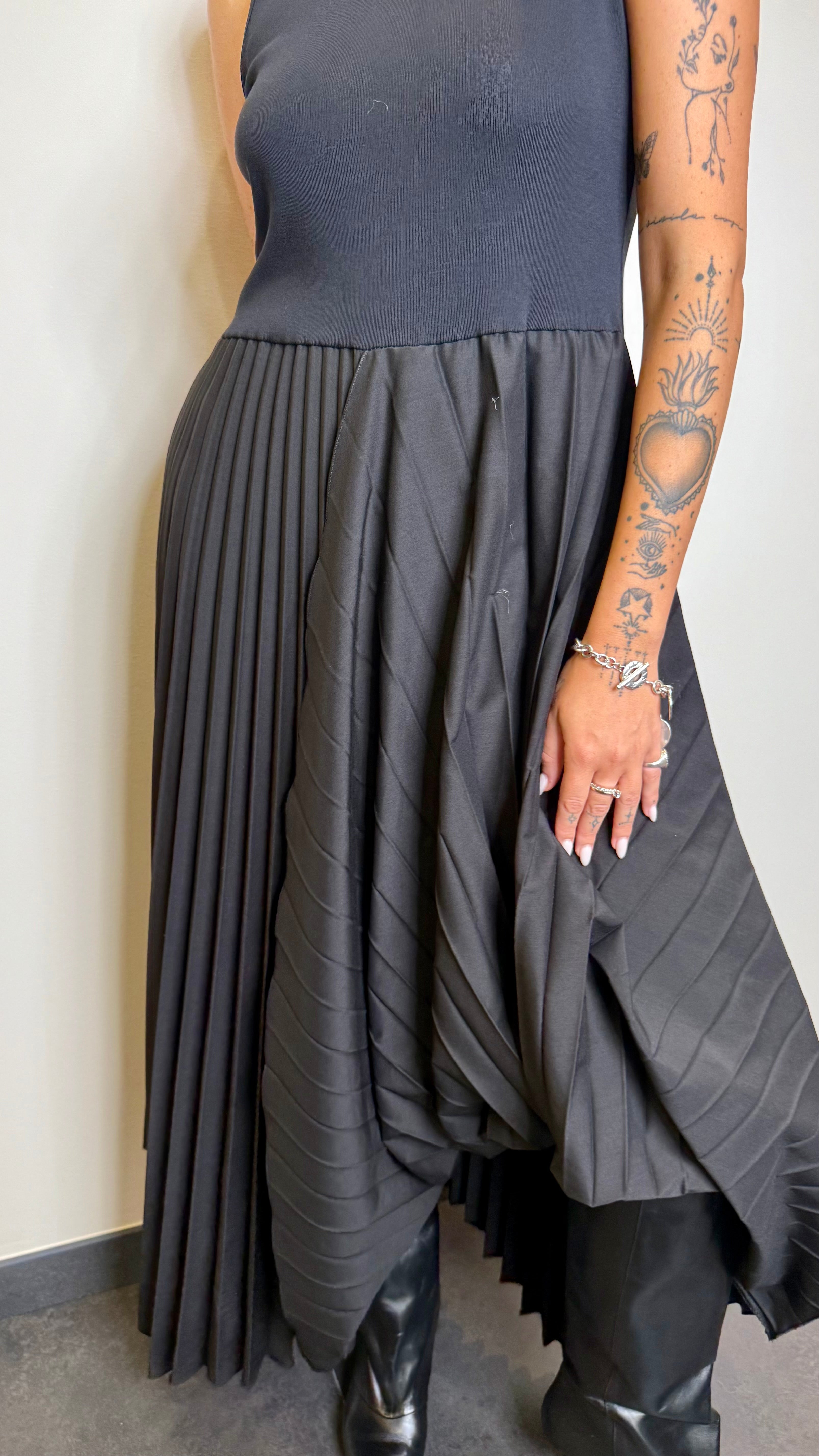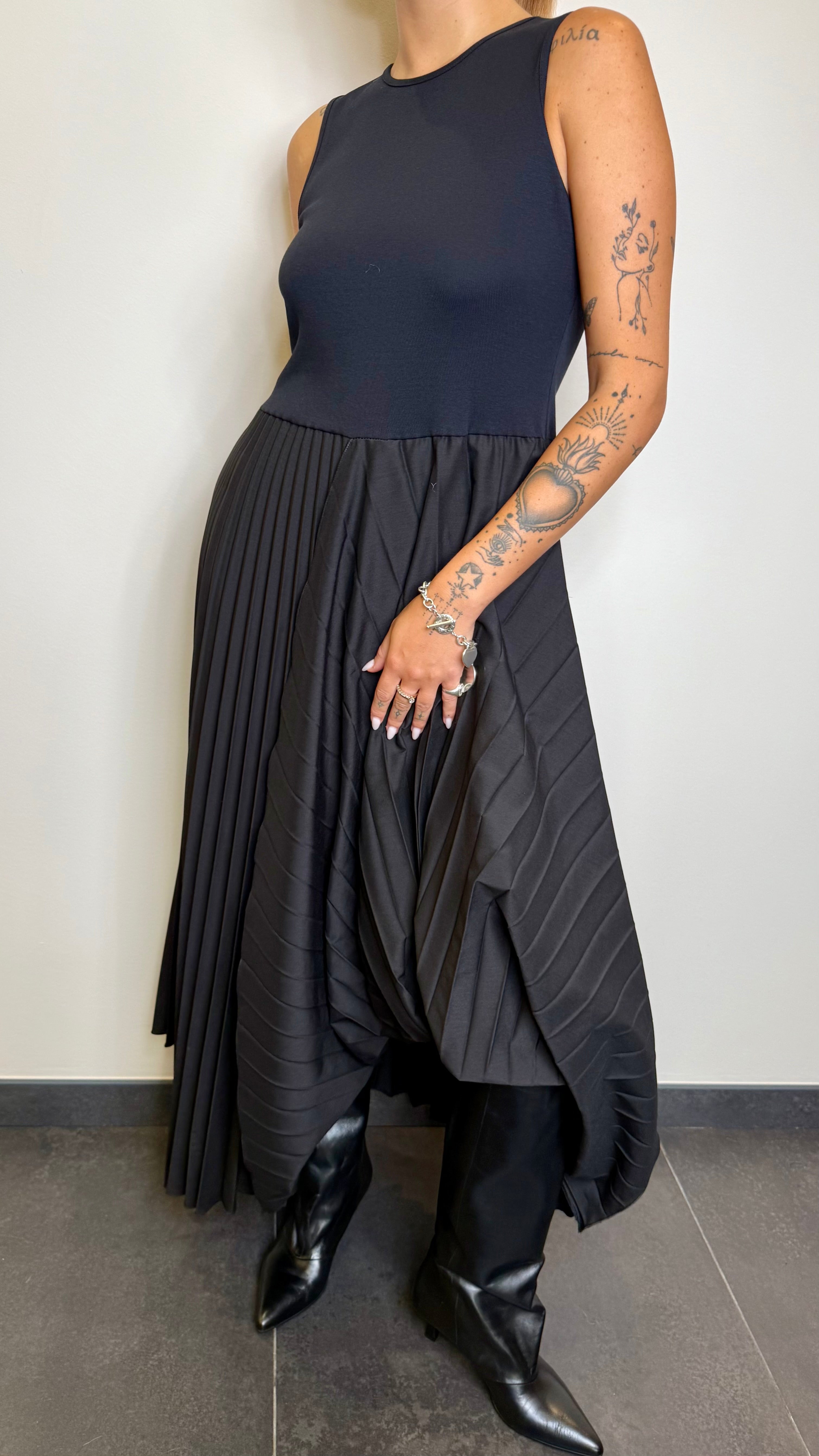 Abito con gonna plissè asimmetrica
