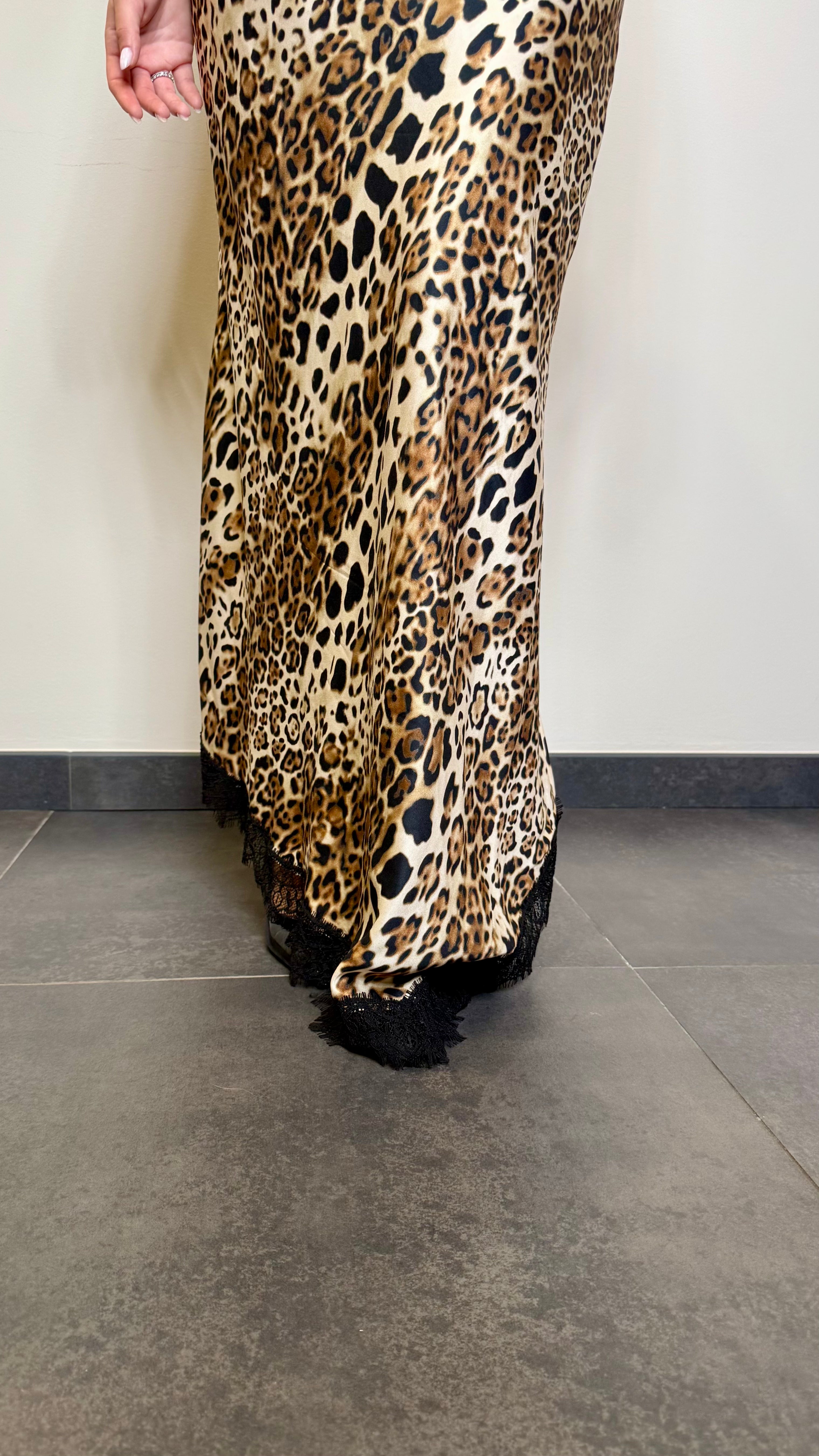 Abito sottoveste maculato con scollo sulla schiena e pizzo