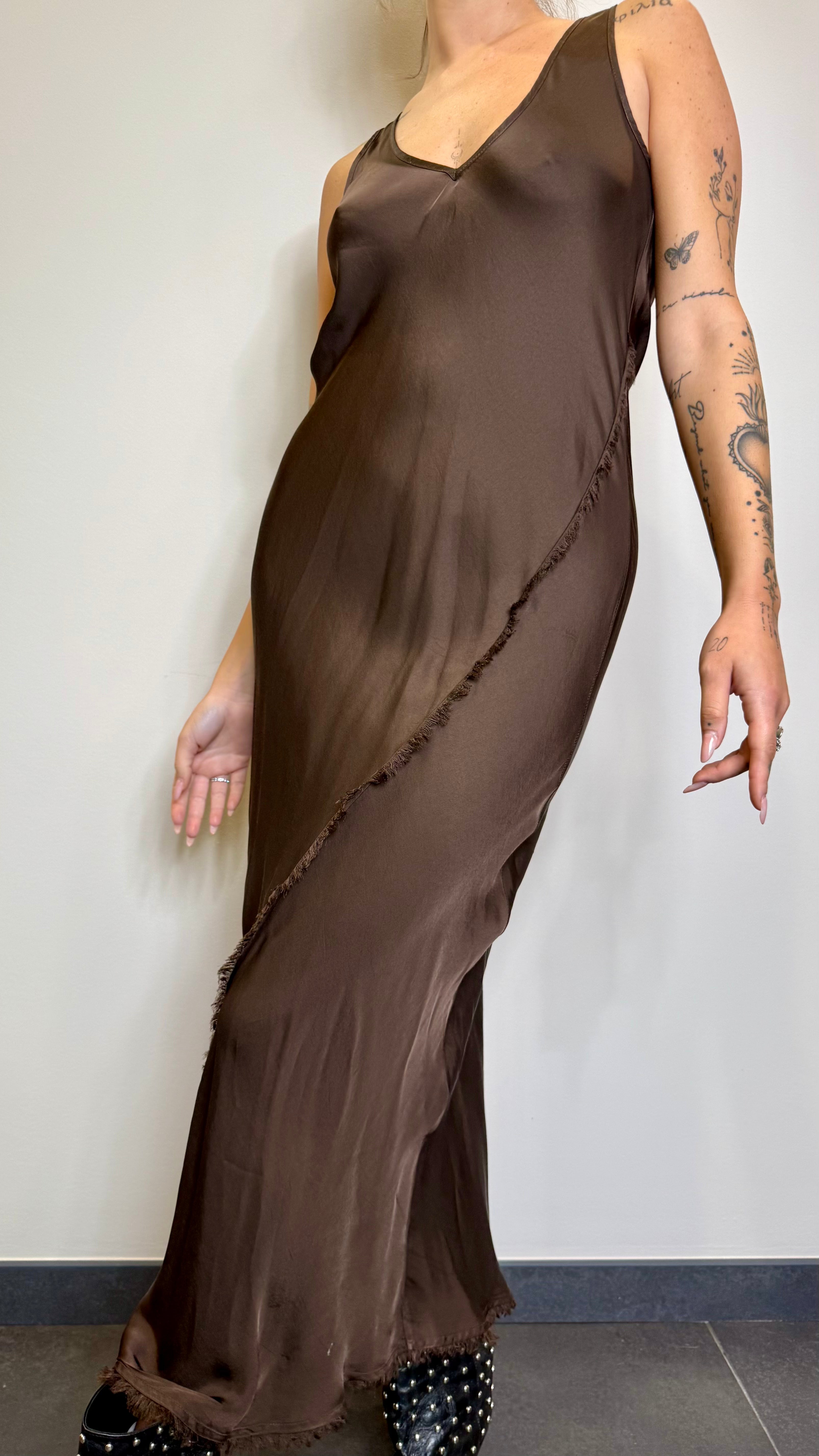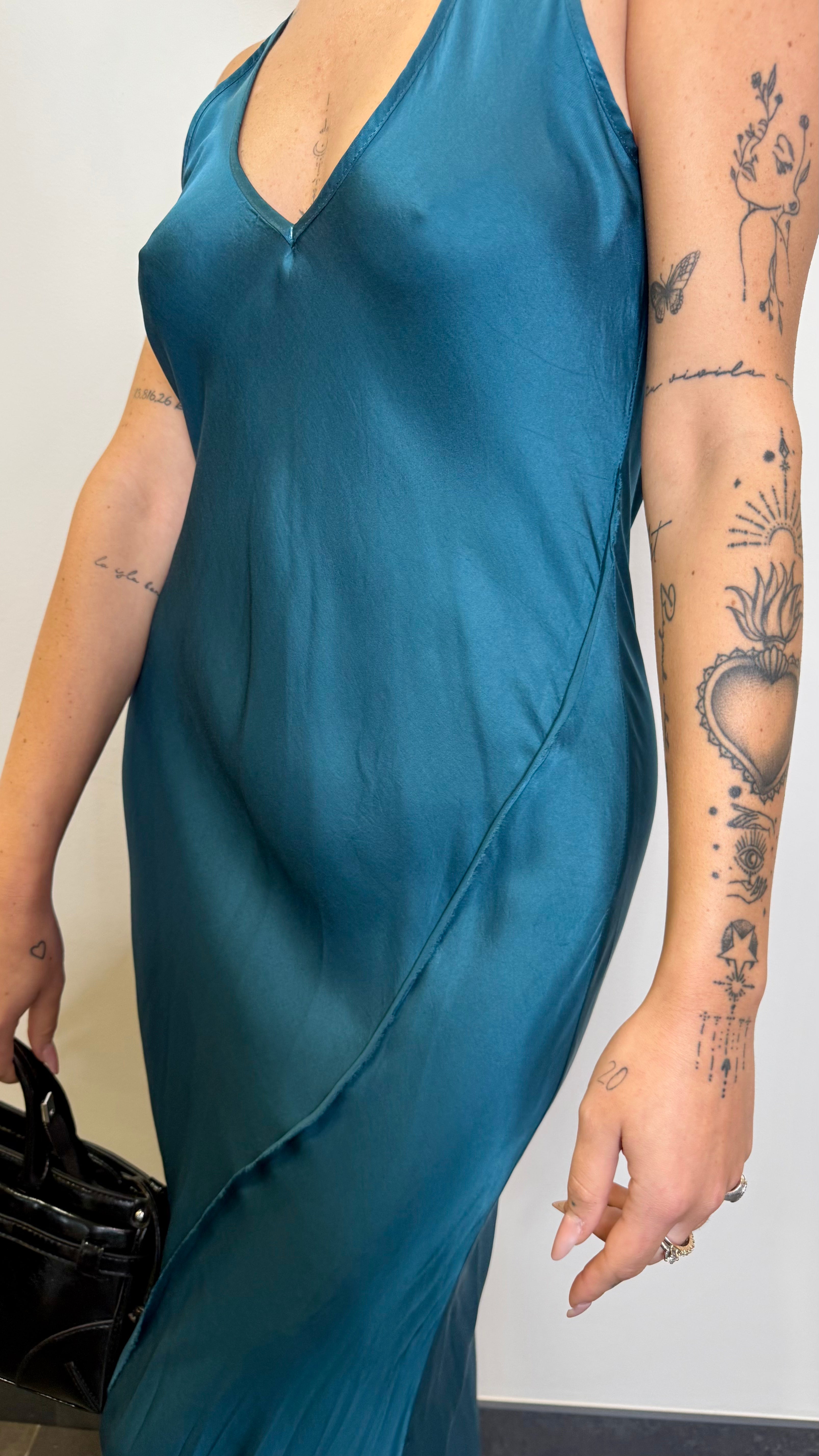 Abito sottoveste in satin con scollo a v