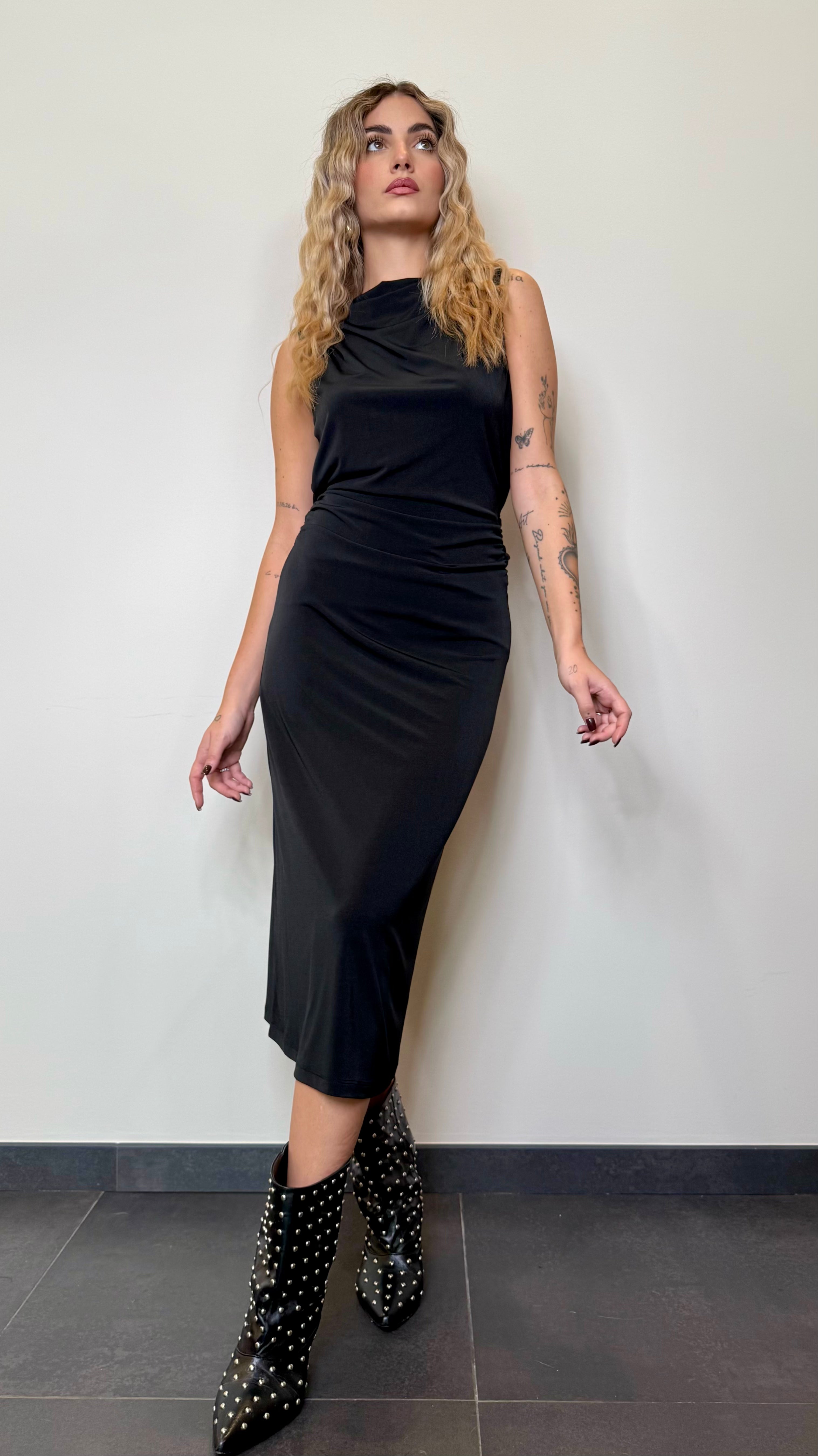 • Abito midi con drappeggiatura e scollo sulla schiena