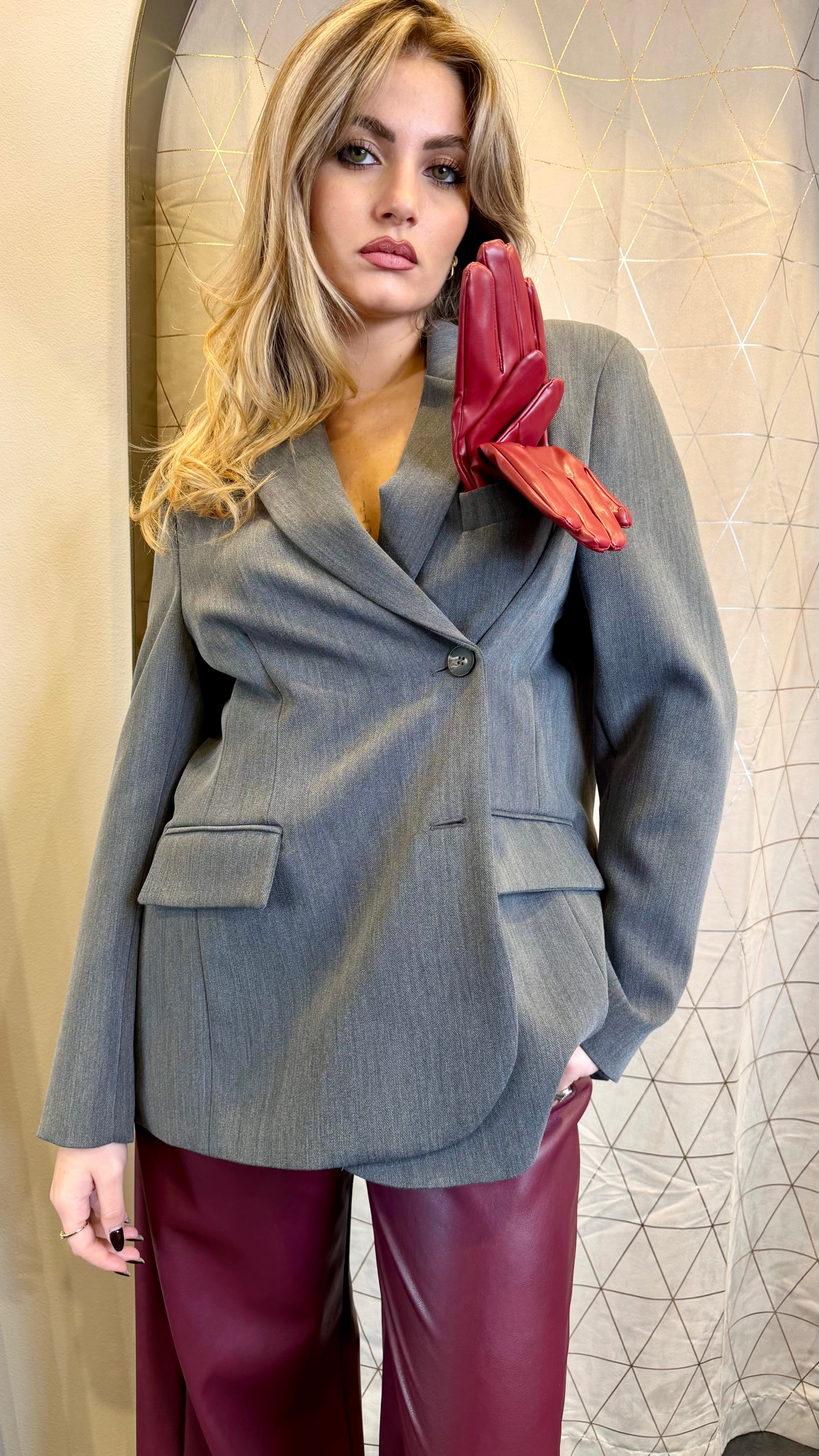 • Blazer con abbottonatura asimmetrica e guanti