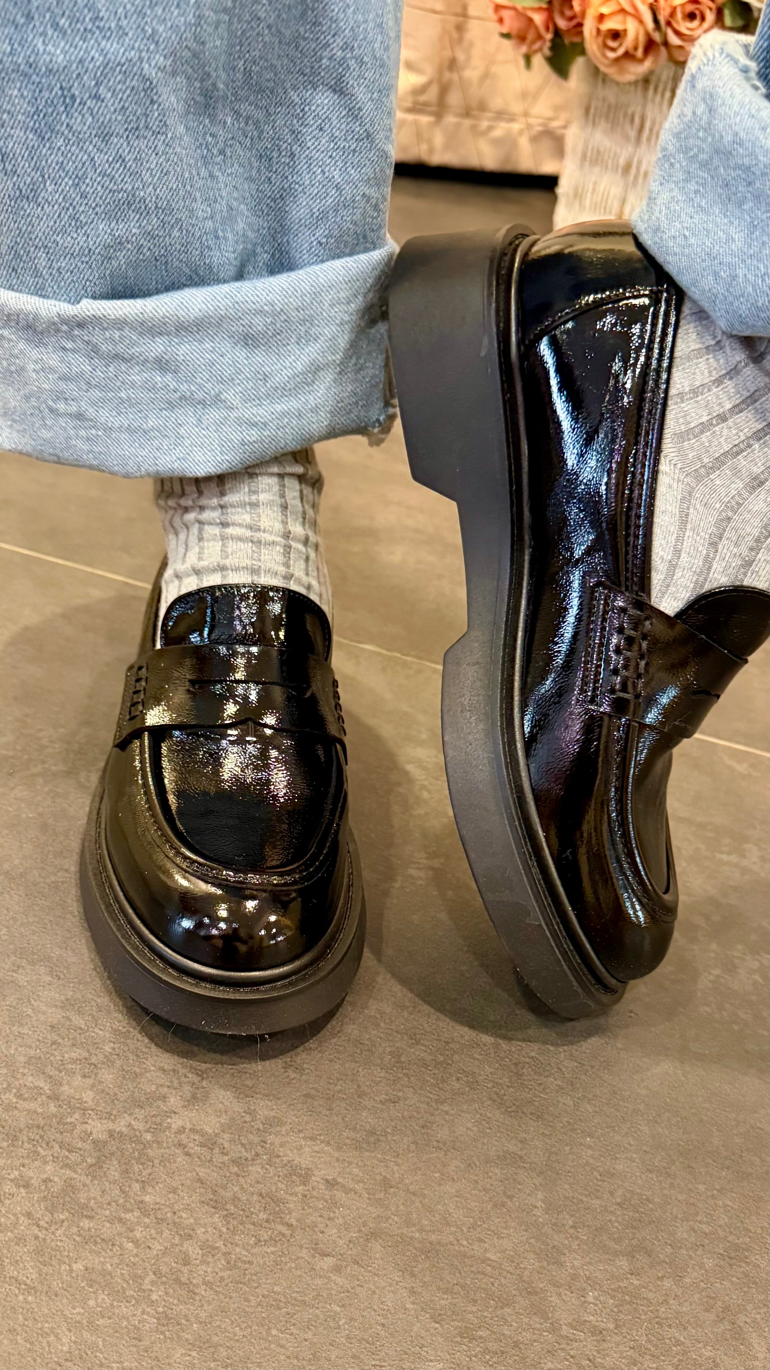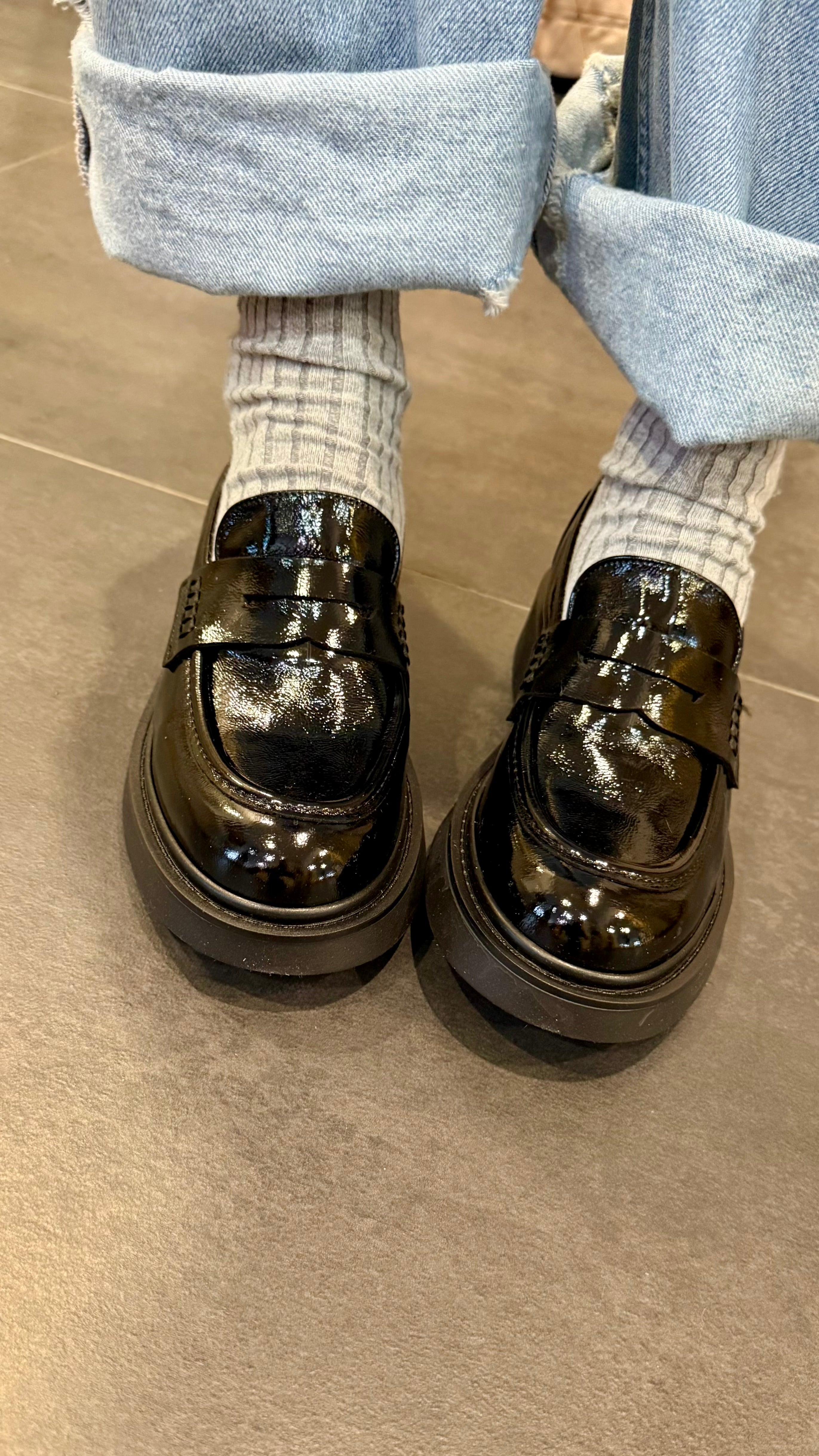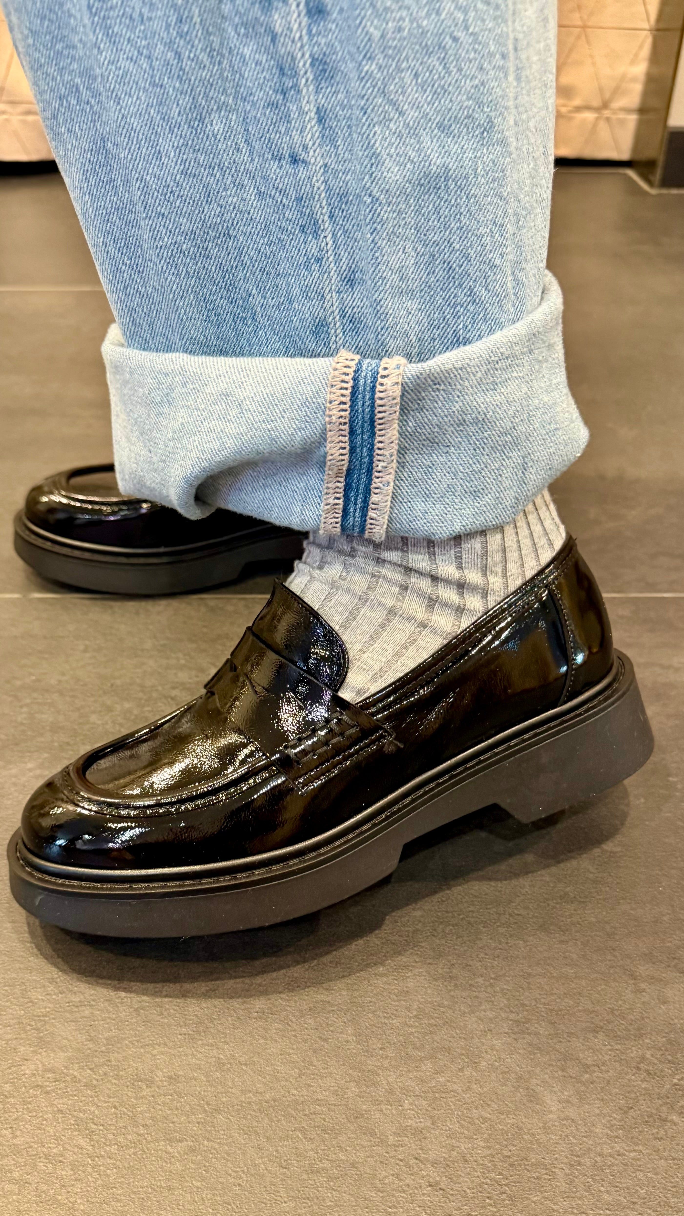 Mocassino in vernice in vera pelle