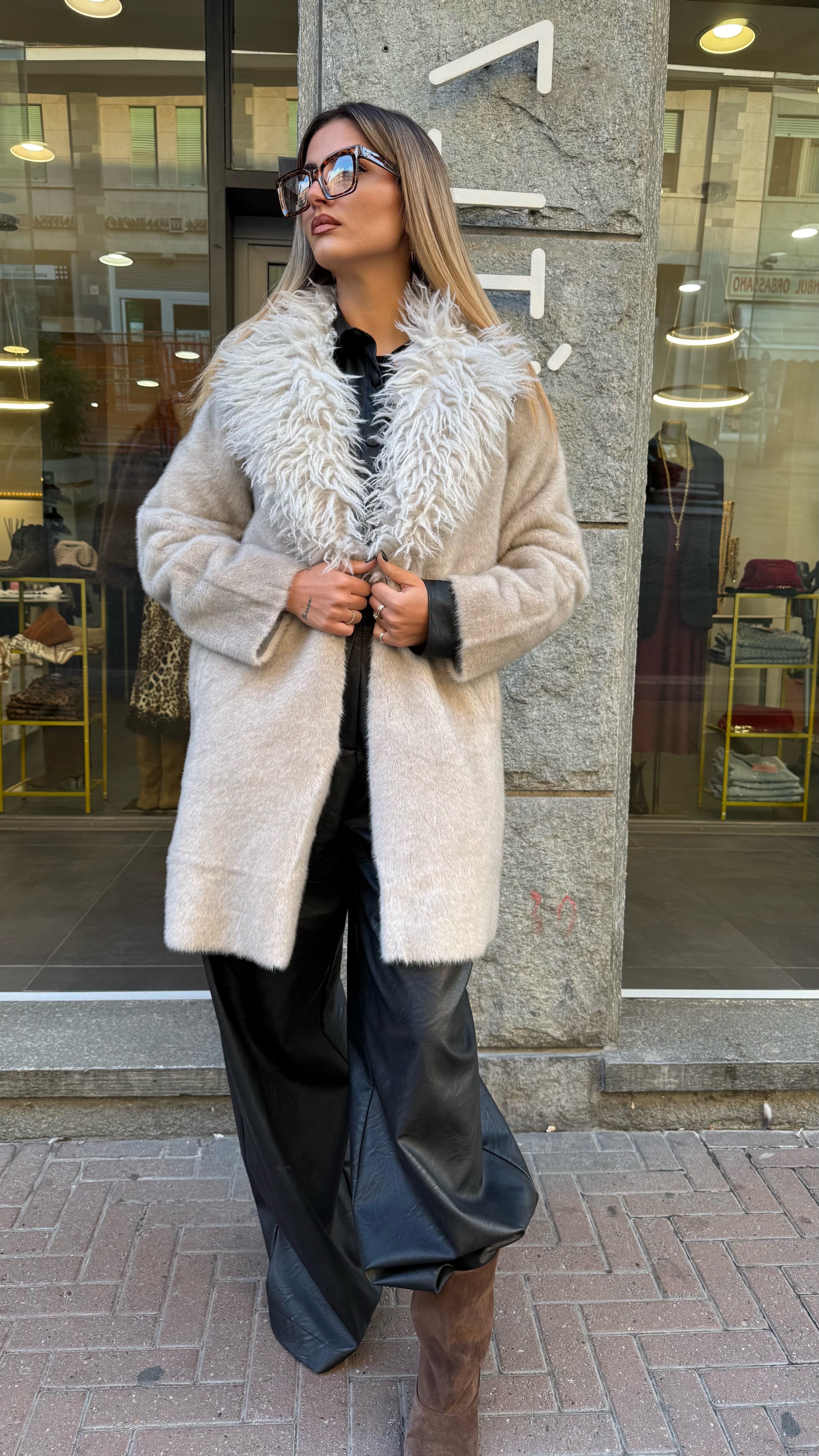 Cappotto eco mongolia con collo