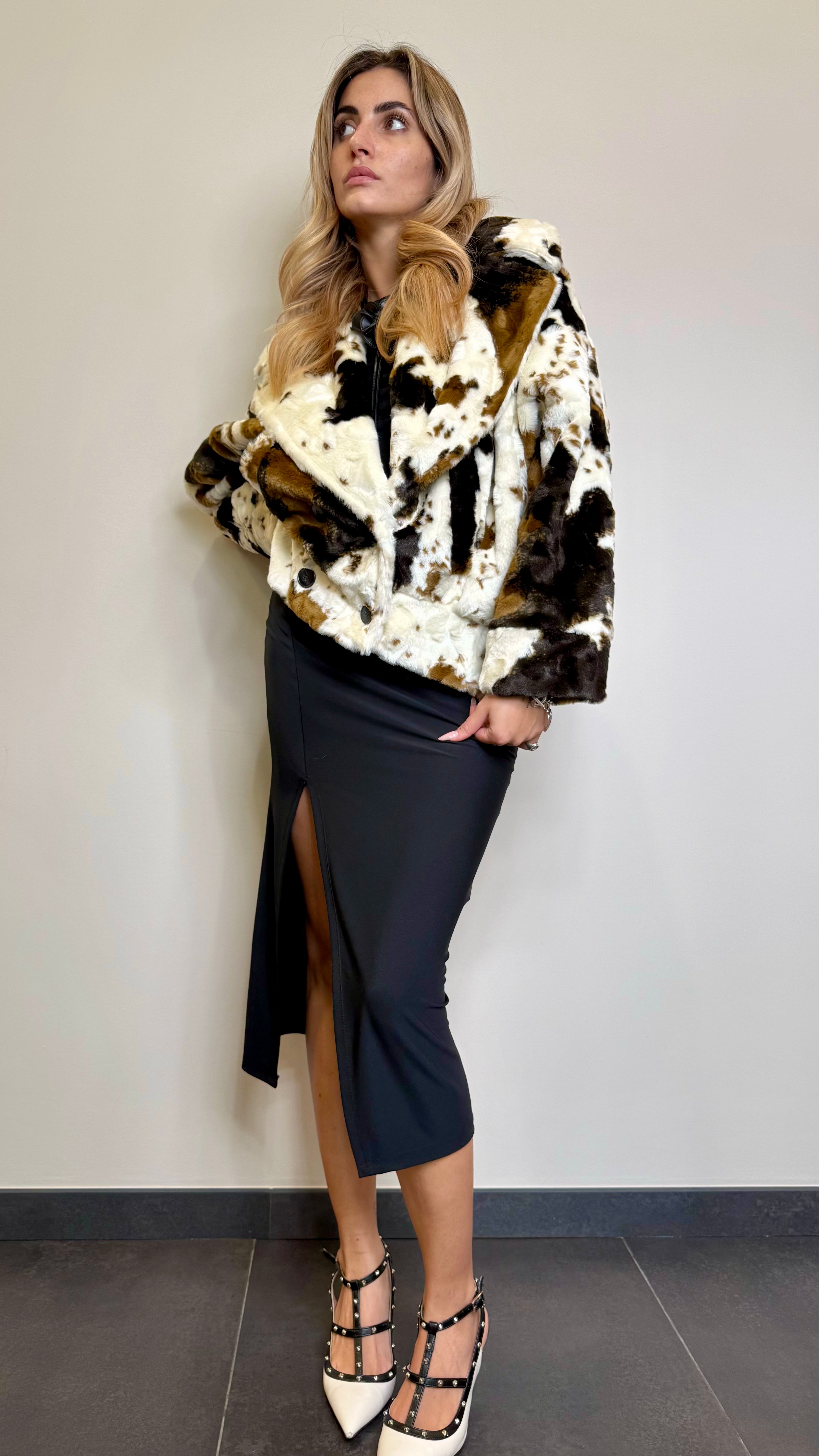 Ecofour fantasia muccata con bottoni e svollo a v