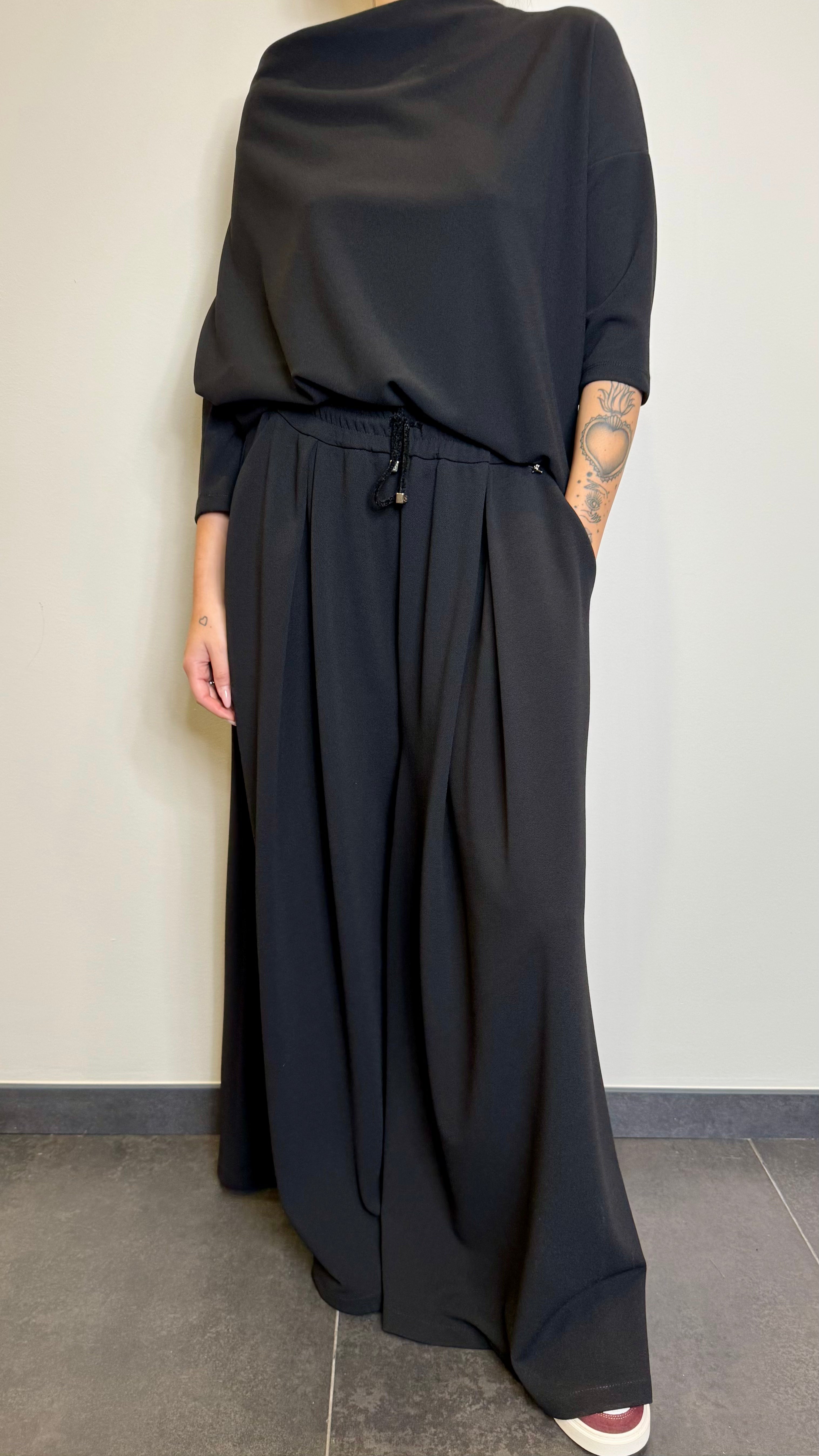 • Pantalone a palazzo con pence e coulisse, molto ampio