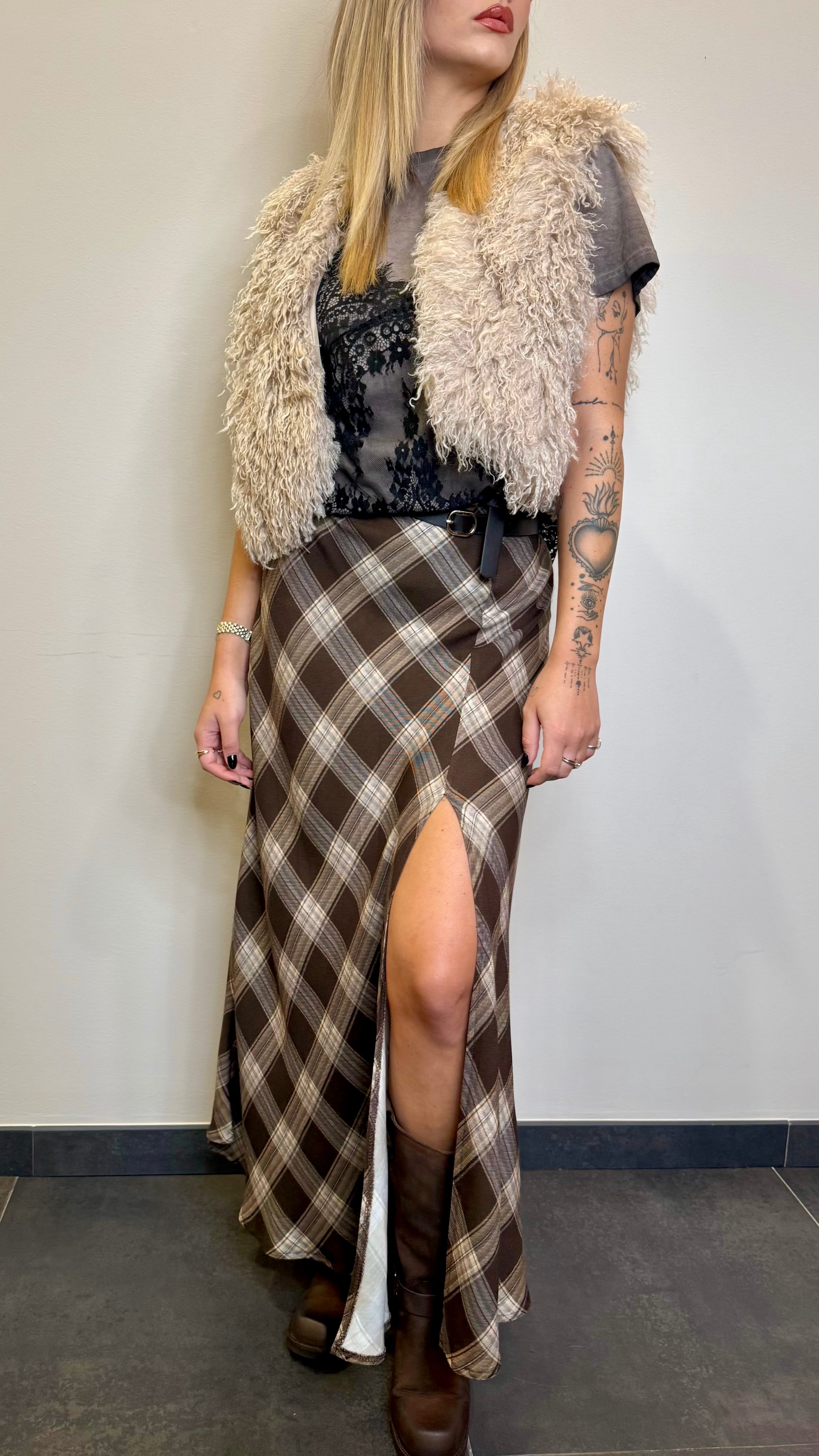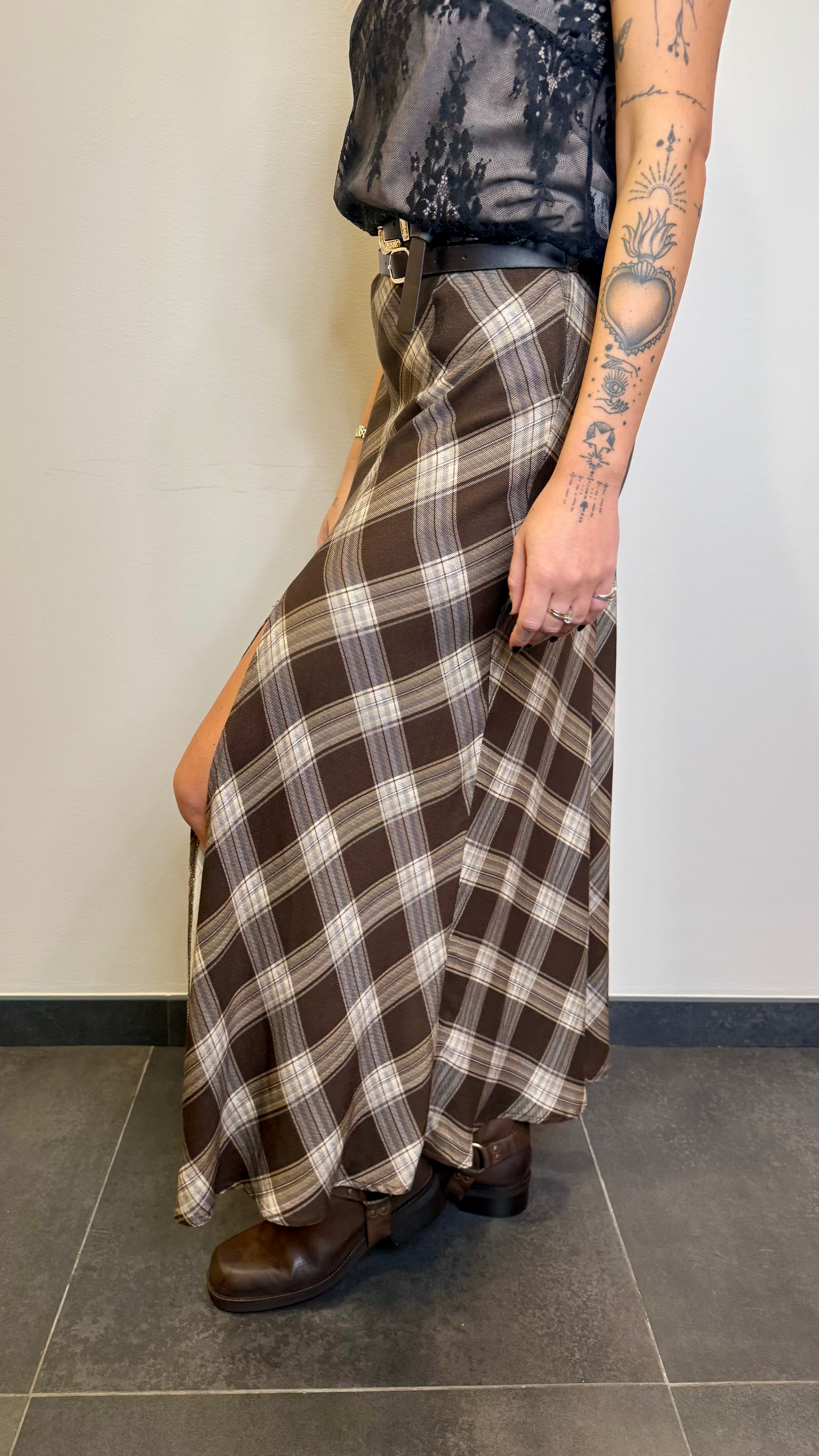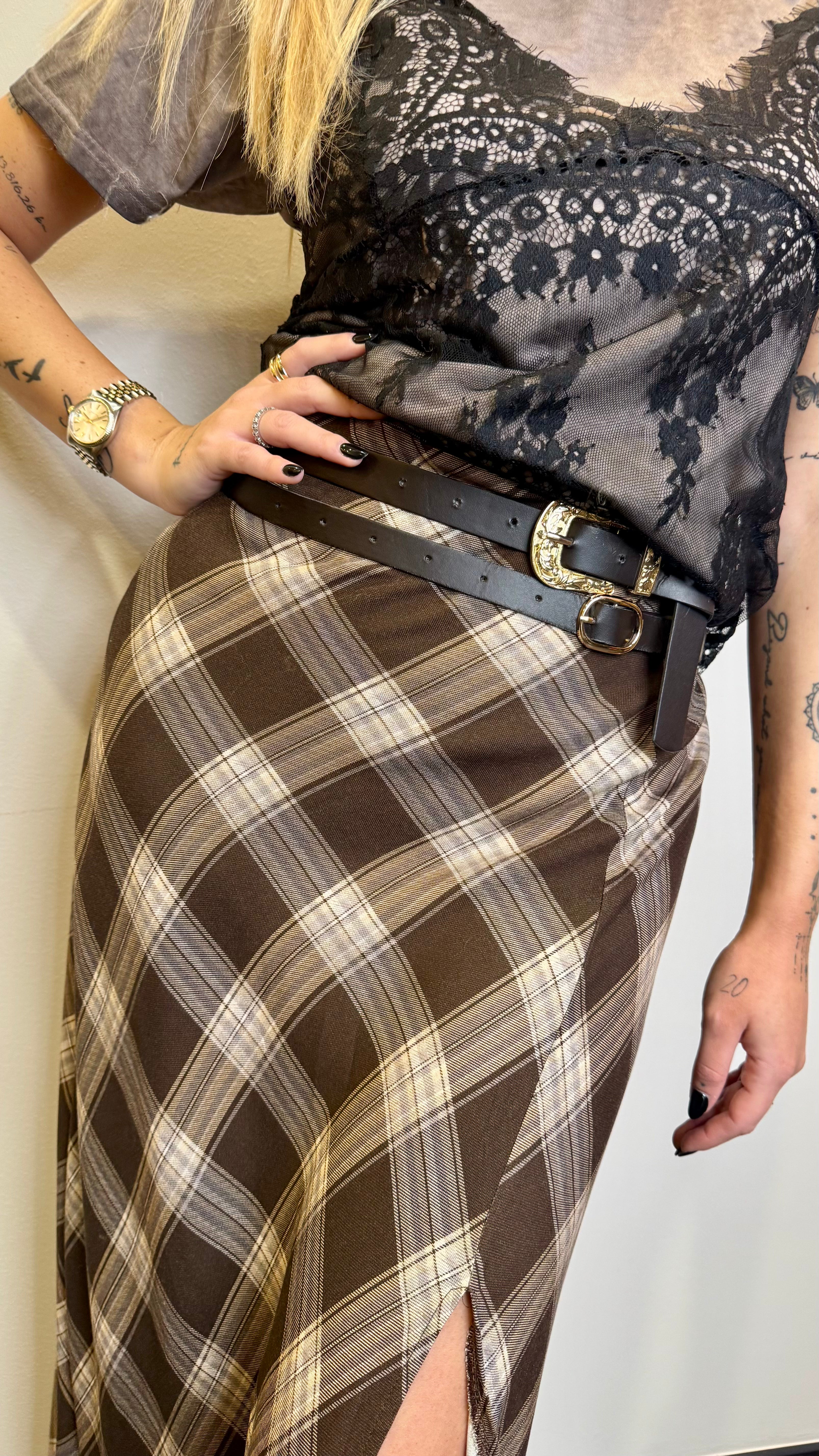 Gonna lunga in fantasia con cinture
