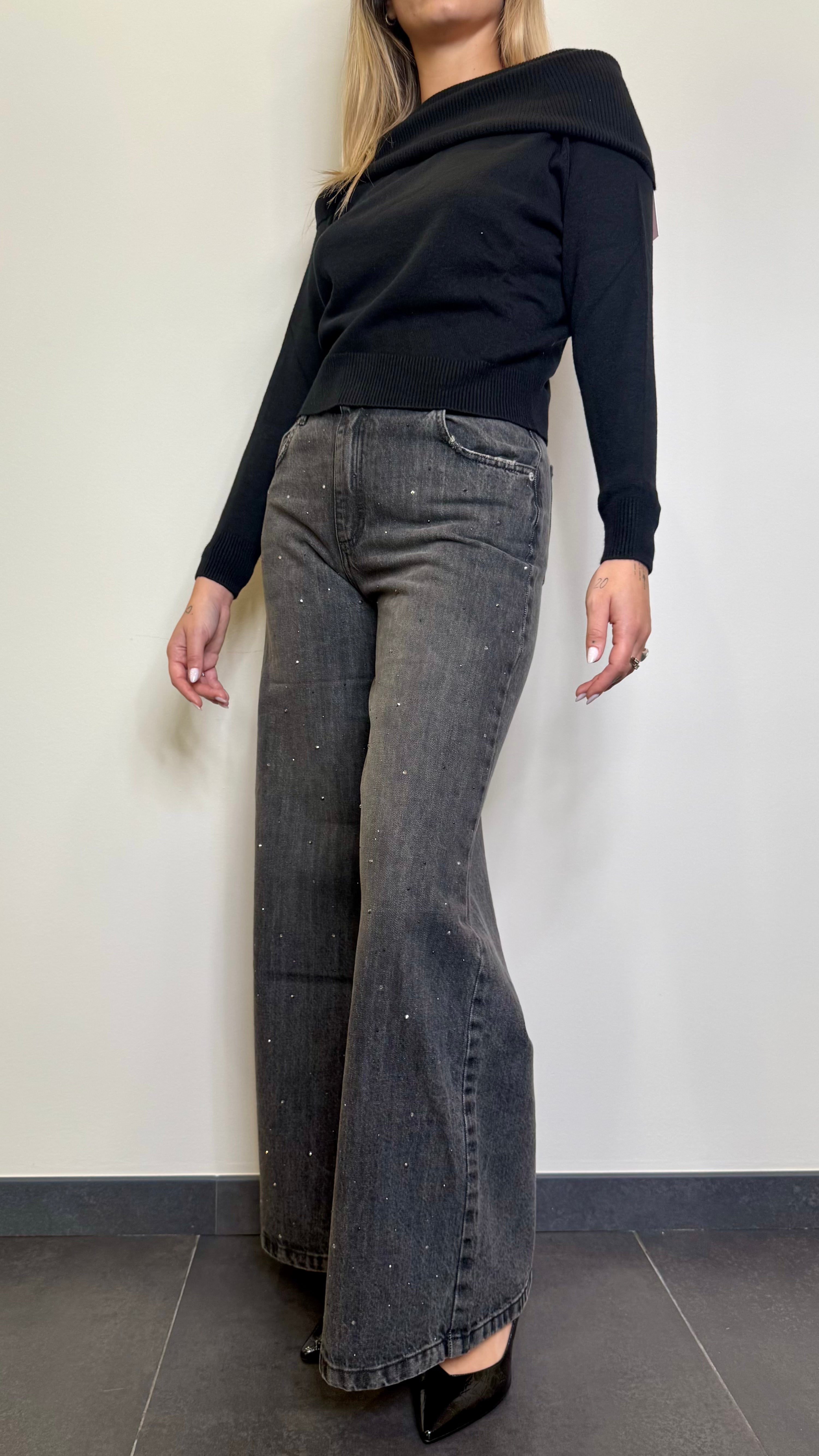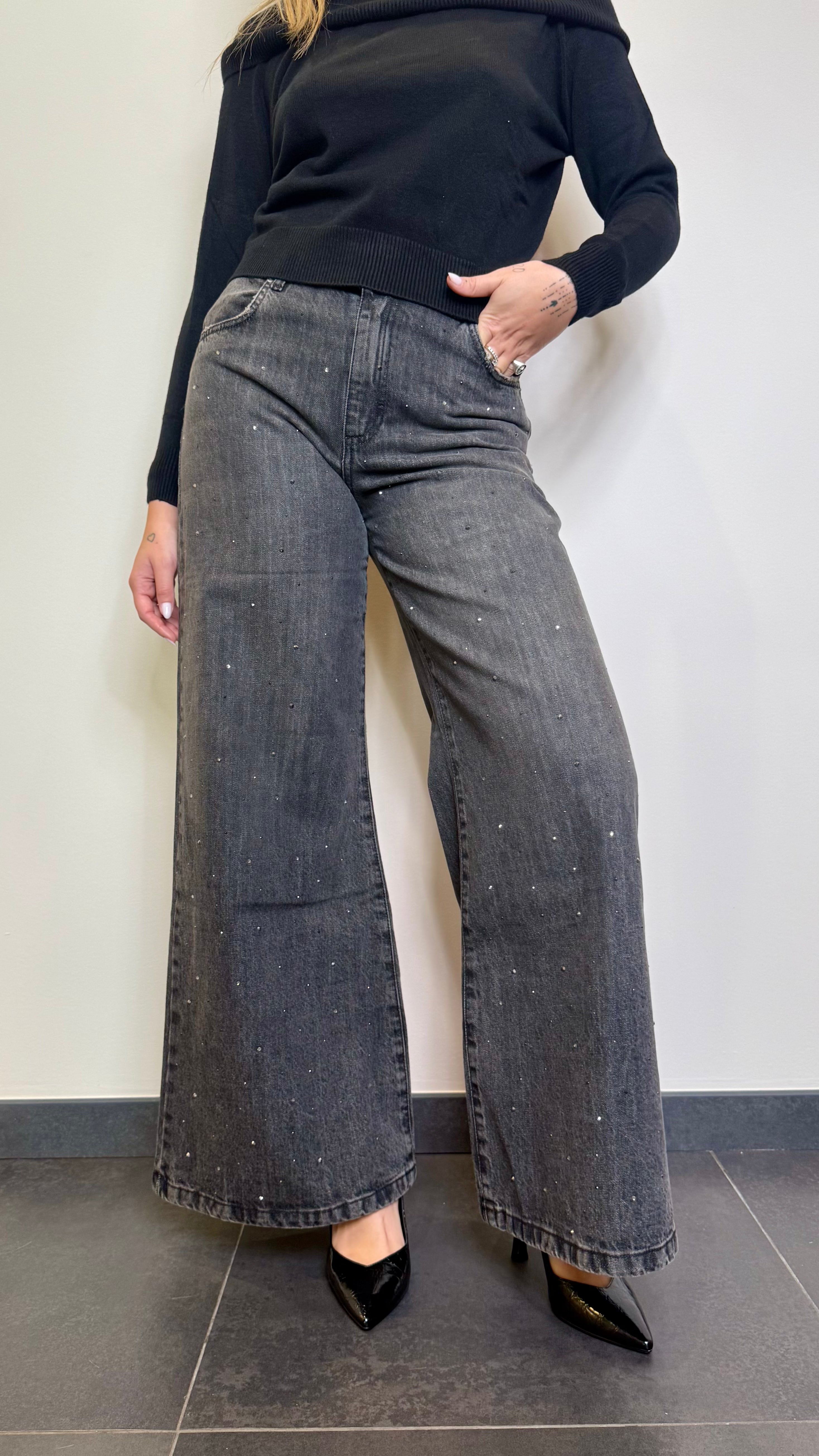 Jeans a palazzo con strass