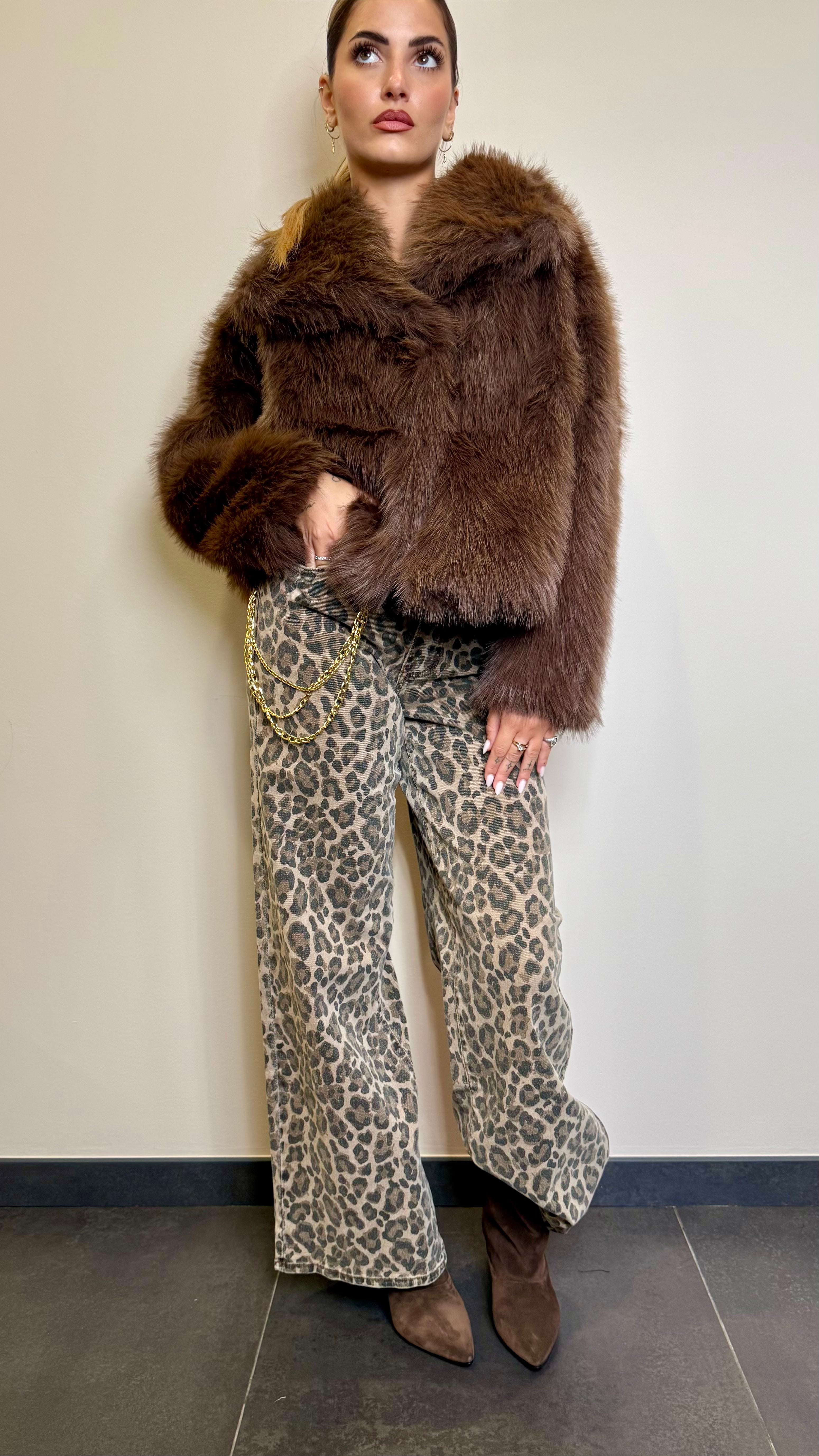 Jeans in fantasia macu con catena laterale