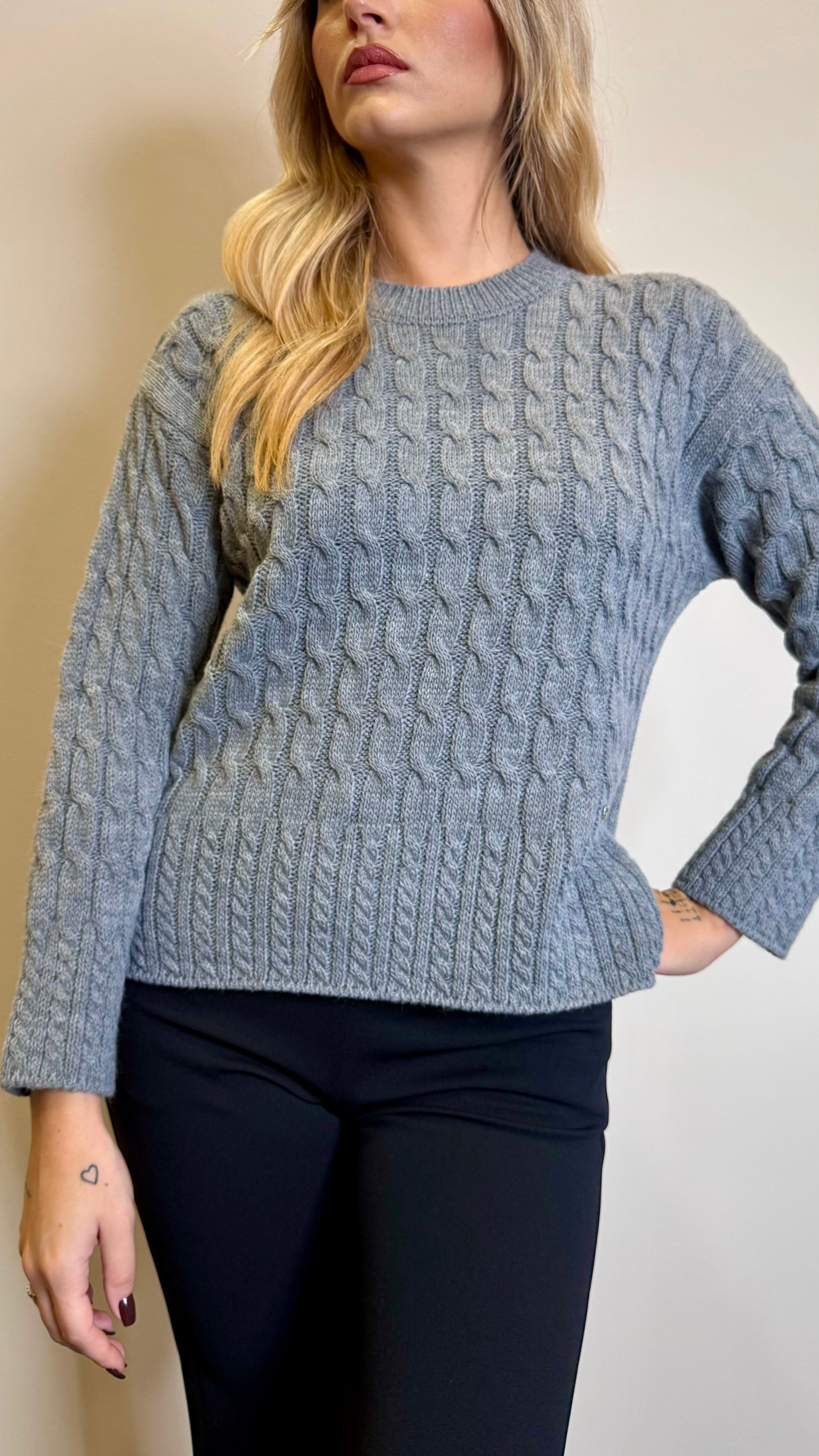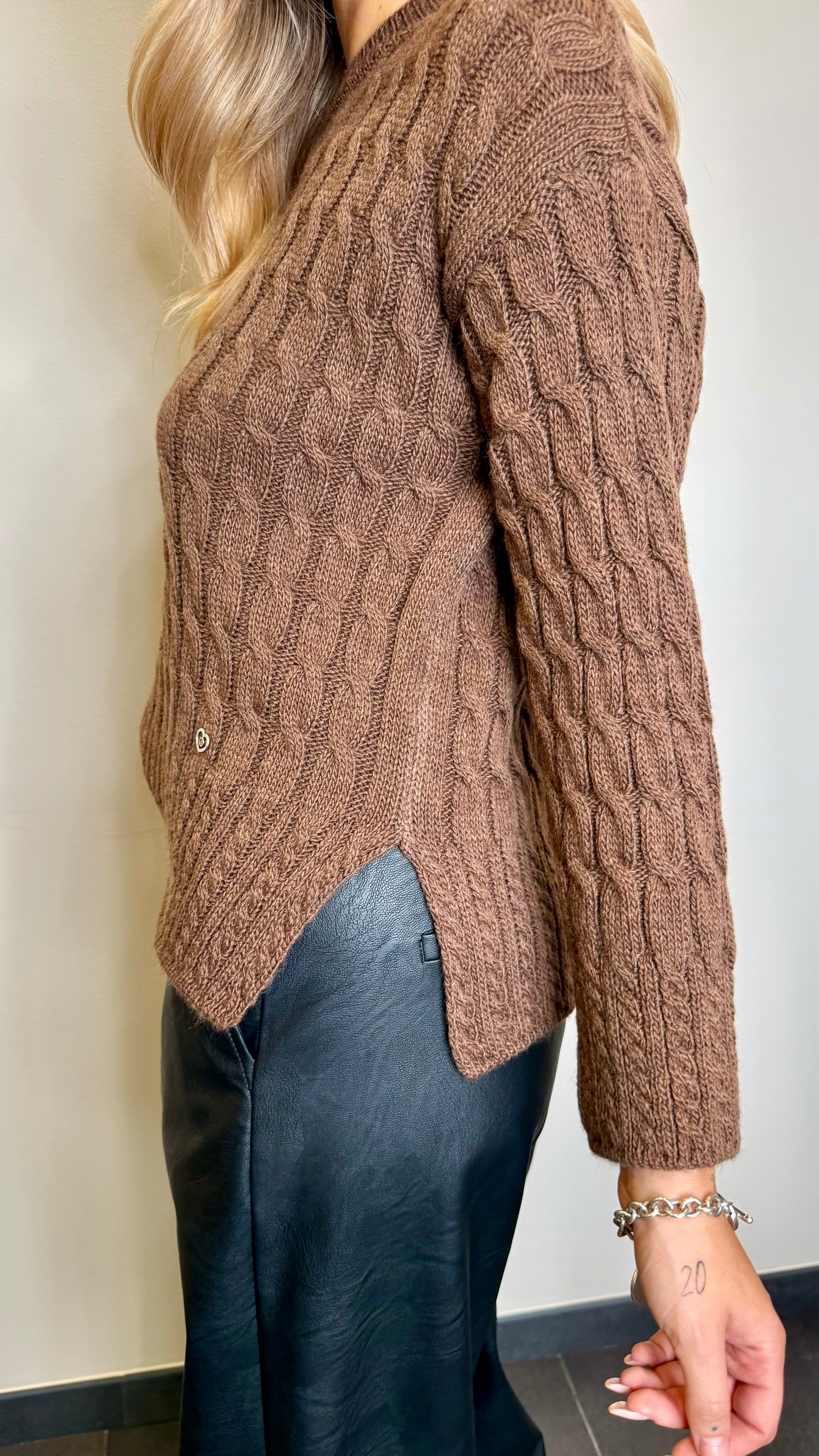 • Maglia girocollo intrecciata con spacchetti laterali