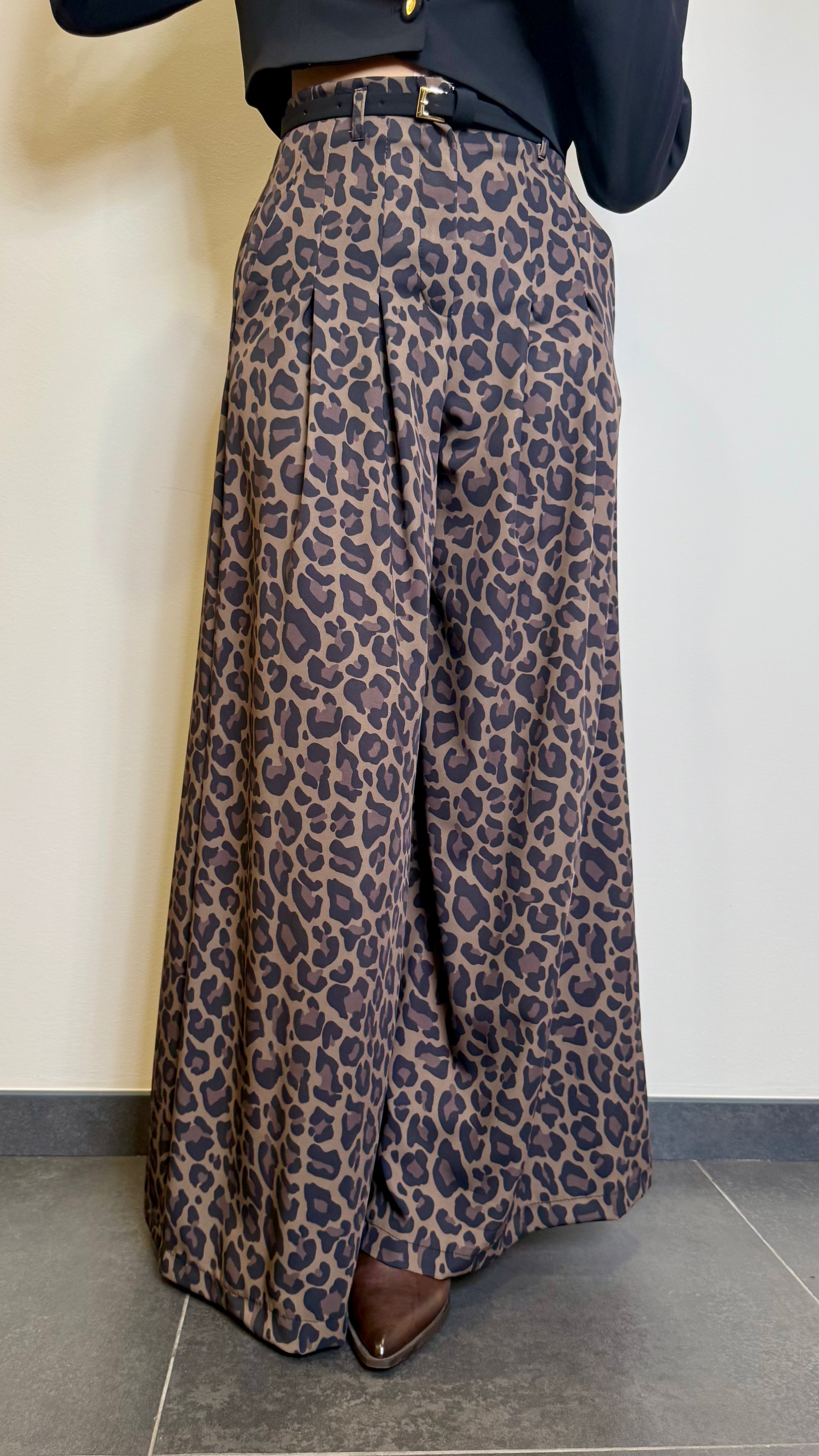 Pantalone a palazzo con pence e cintura in fantasia macu