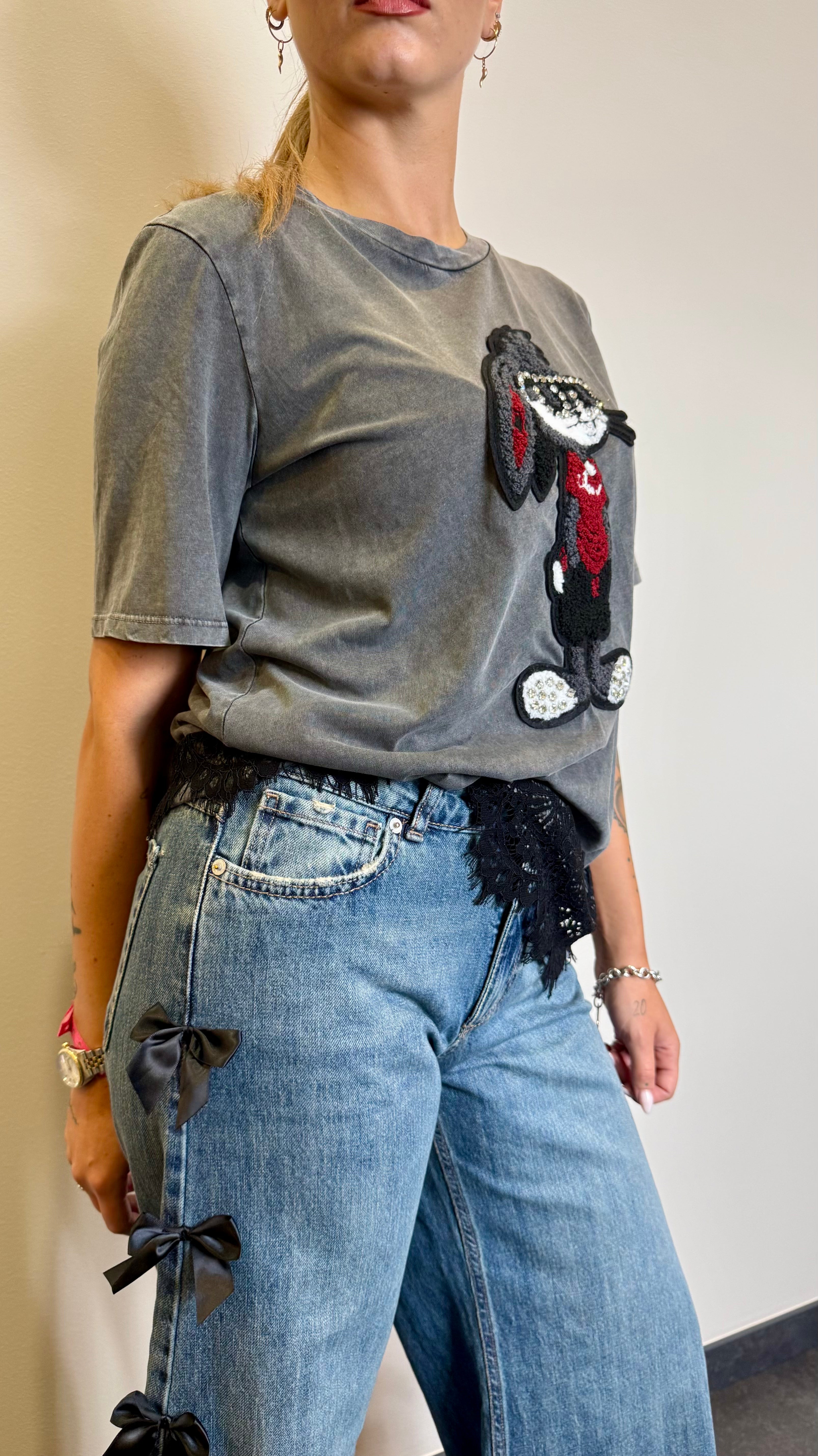 T-shirt con pizzo e ricamo