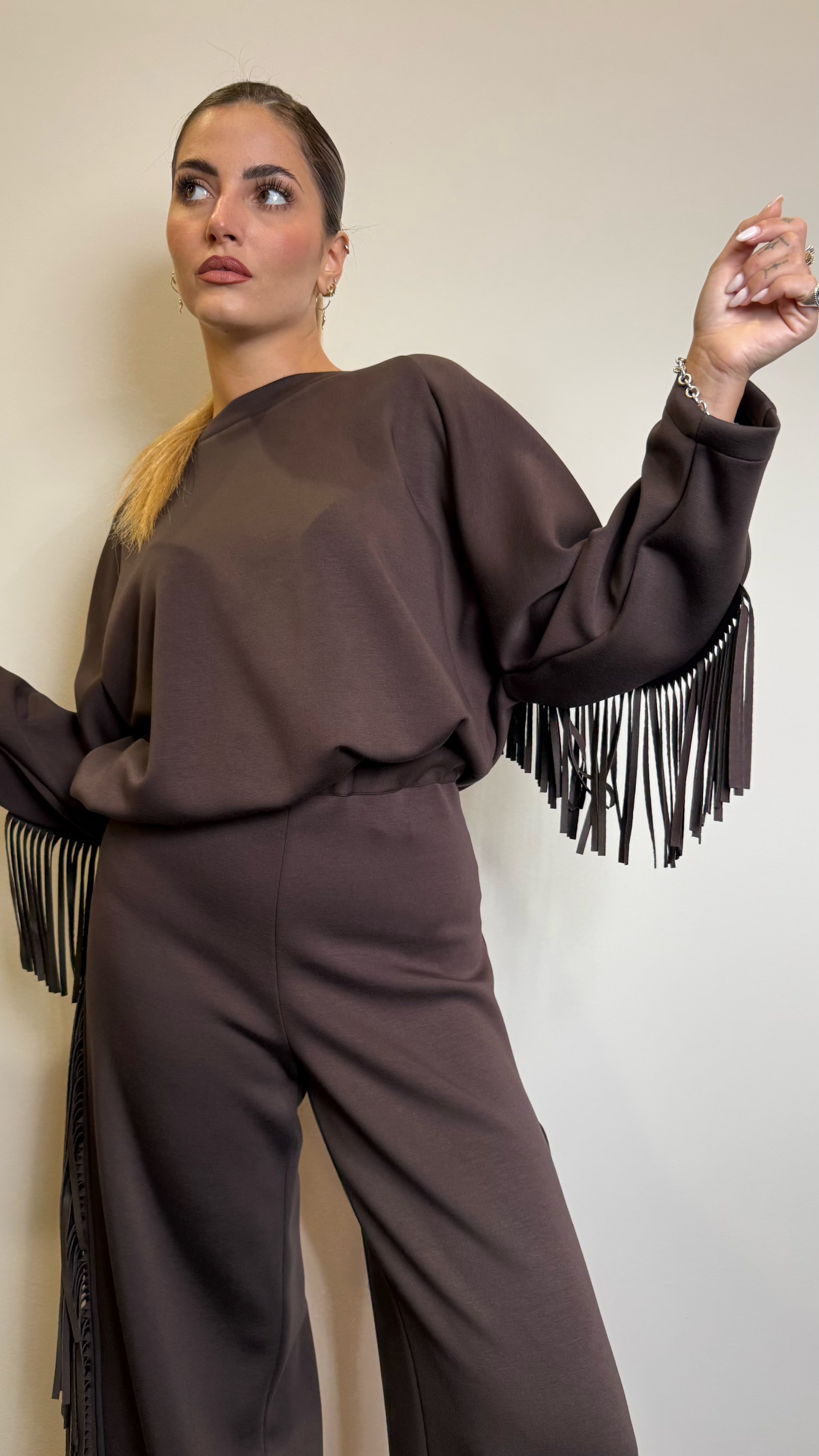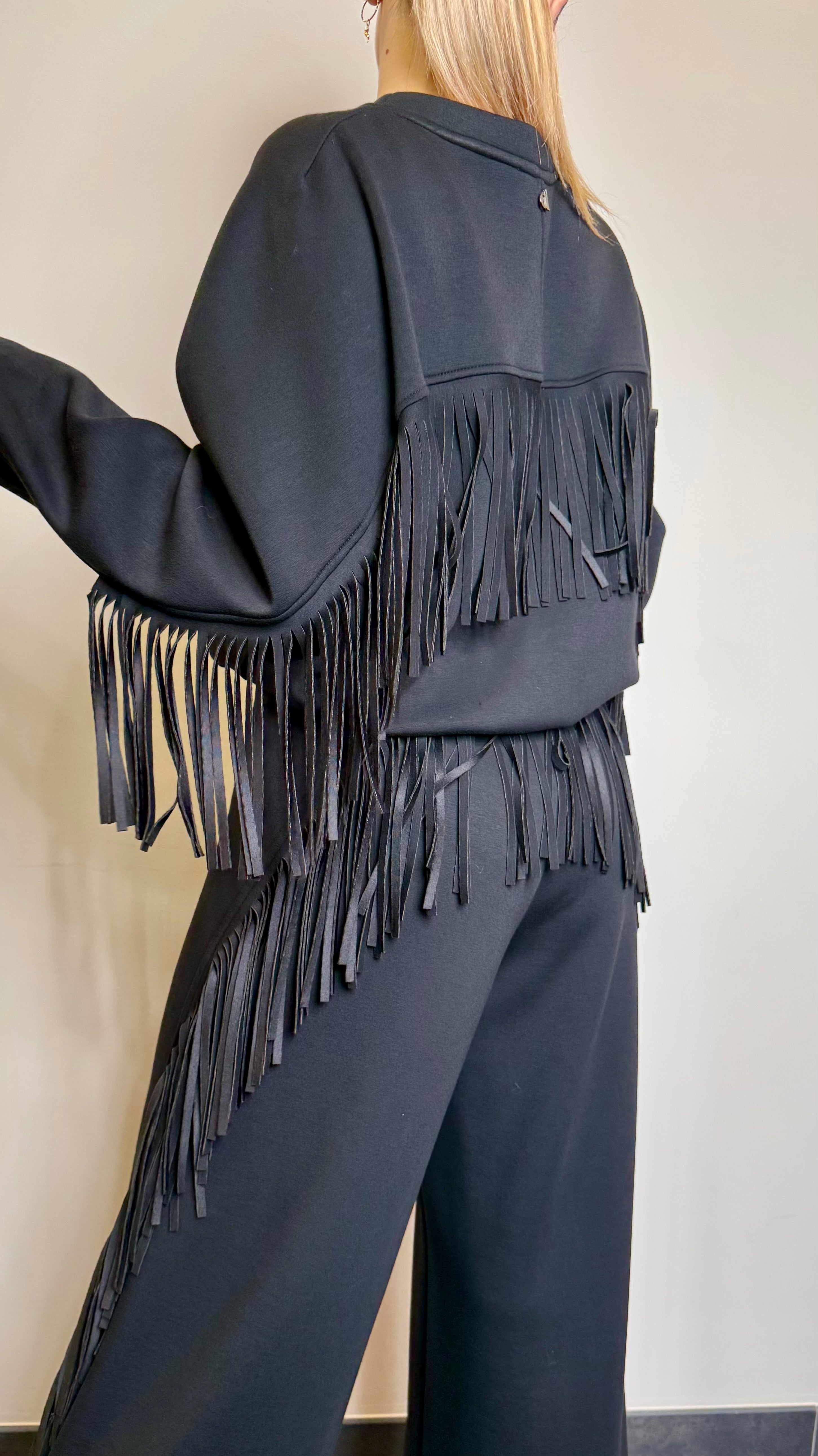 Felpa in cady con frange sulle maniche e sul retro
