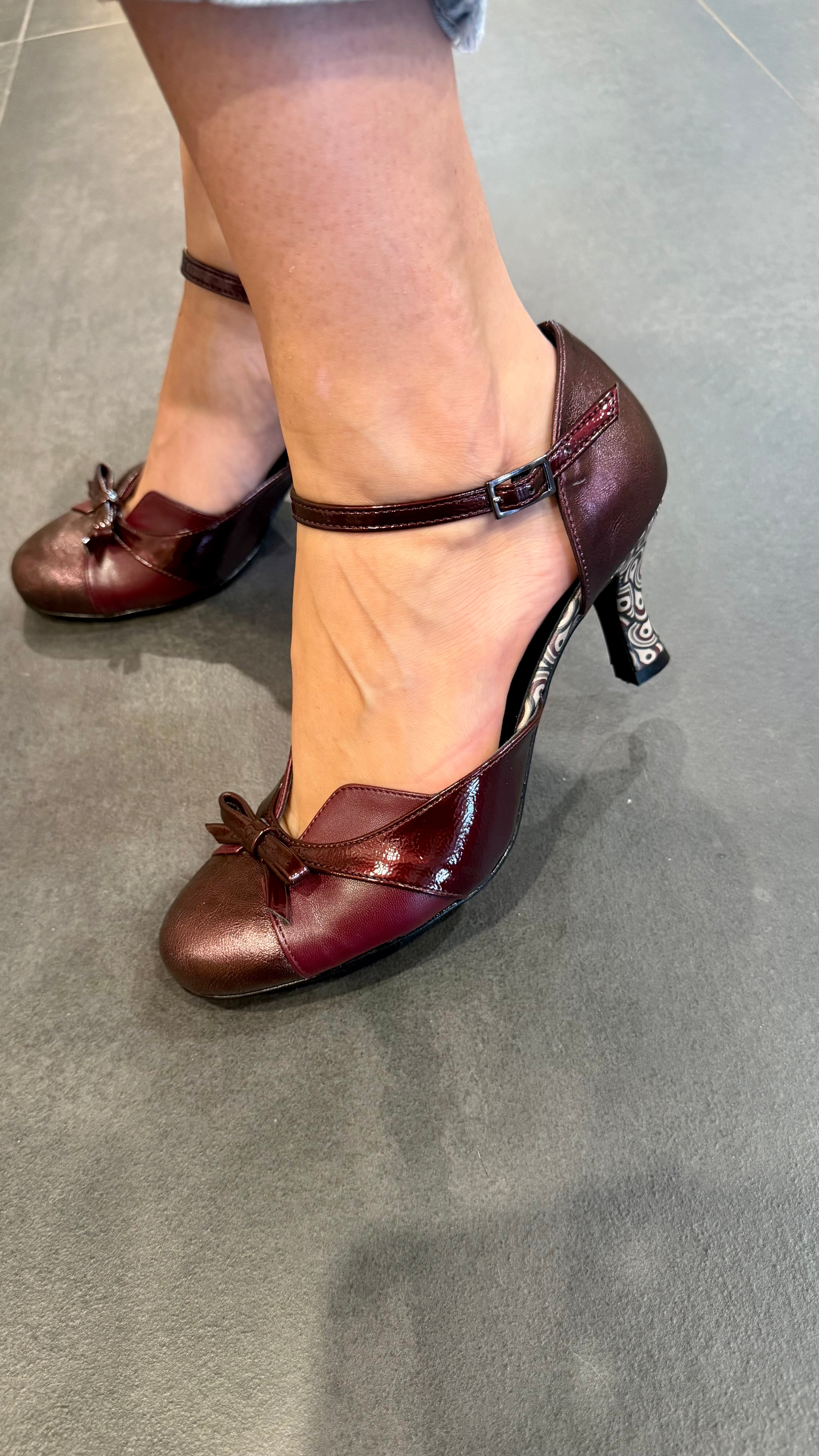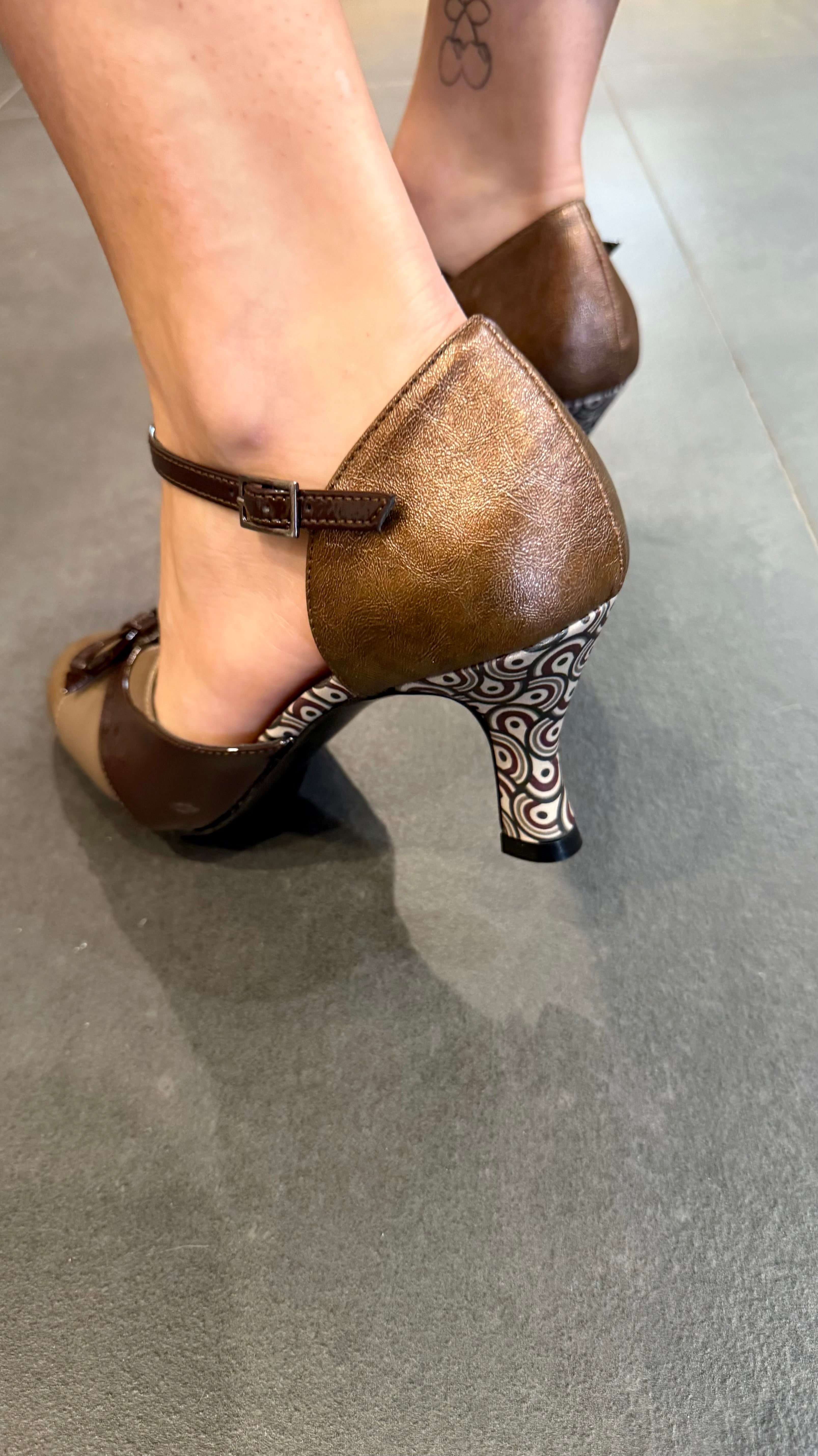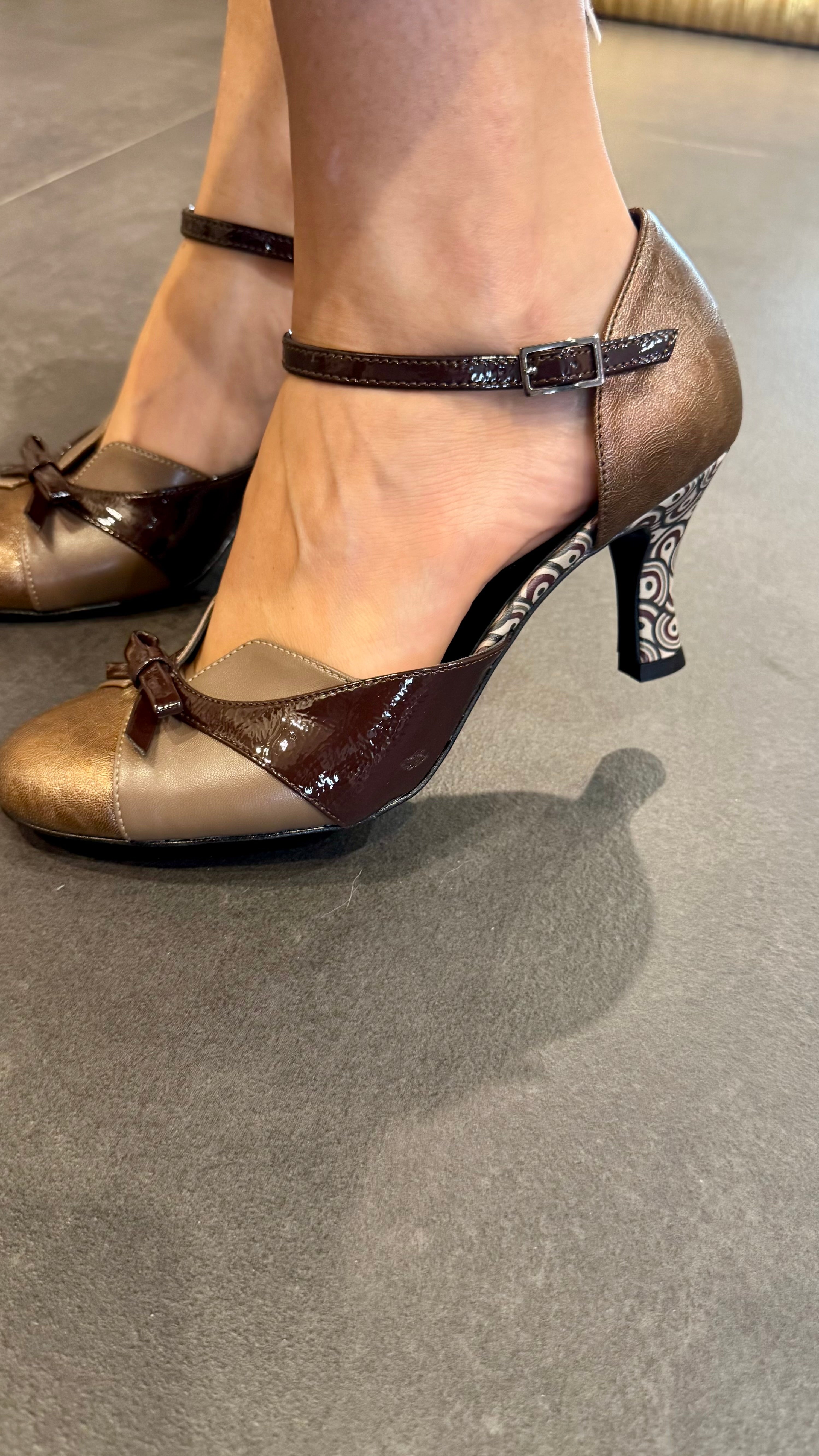 • Décolleté con fiocchetto e tacco in fantasia in vera pelle