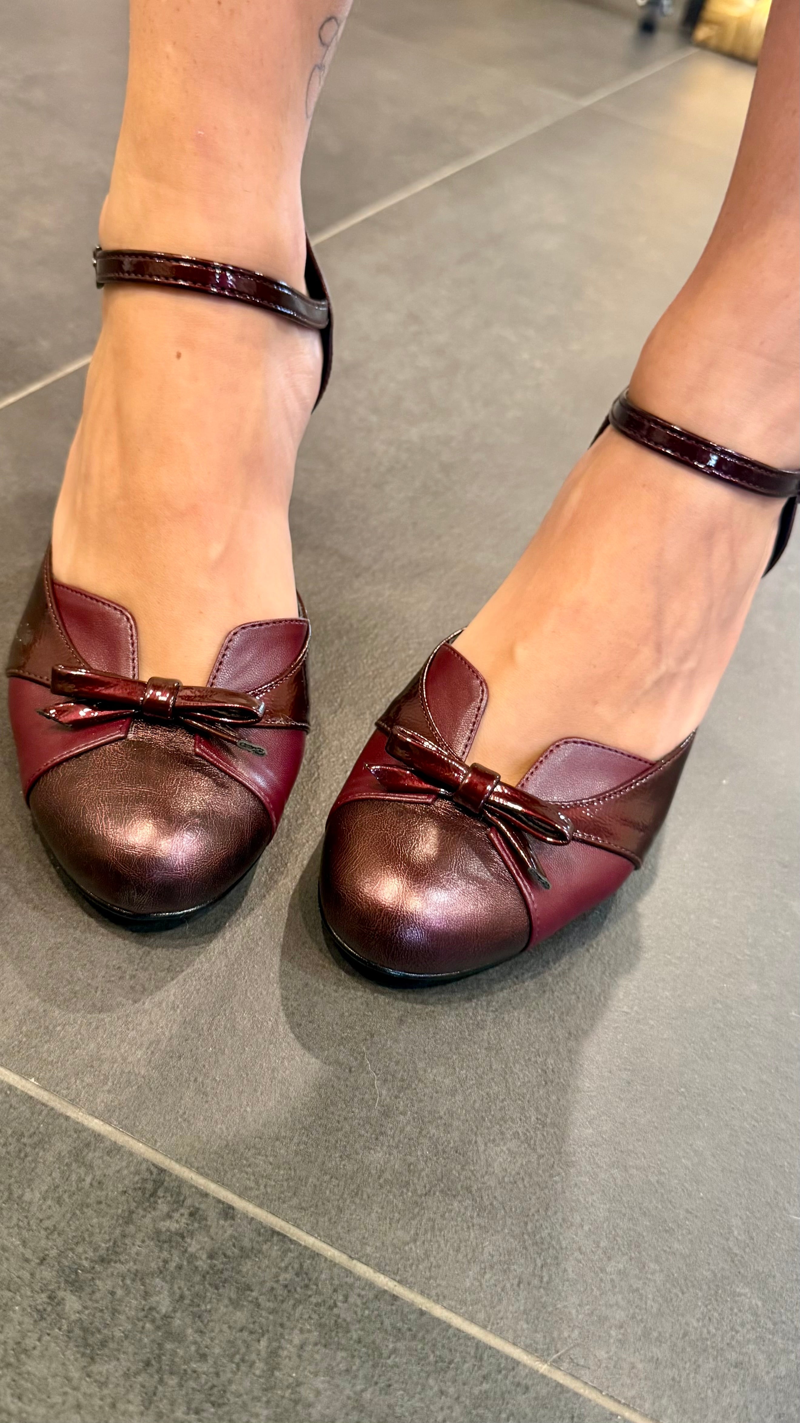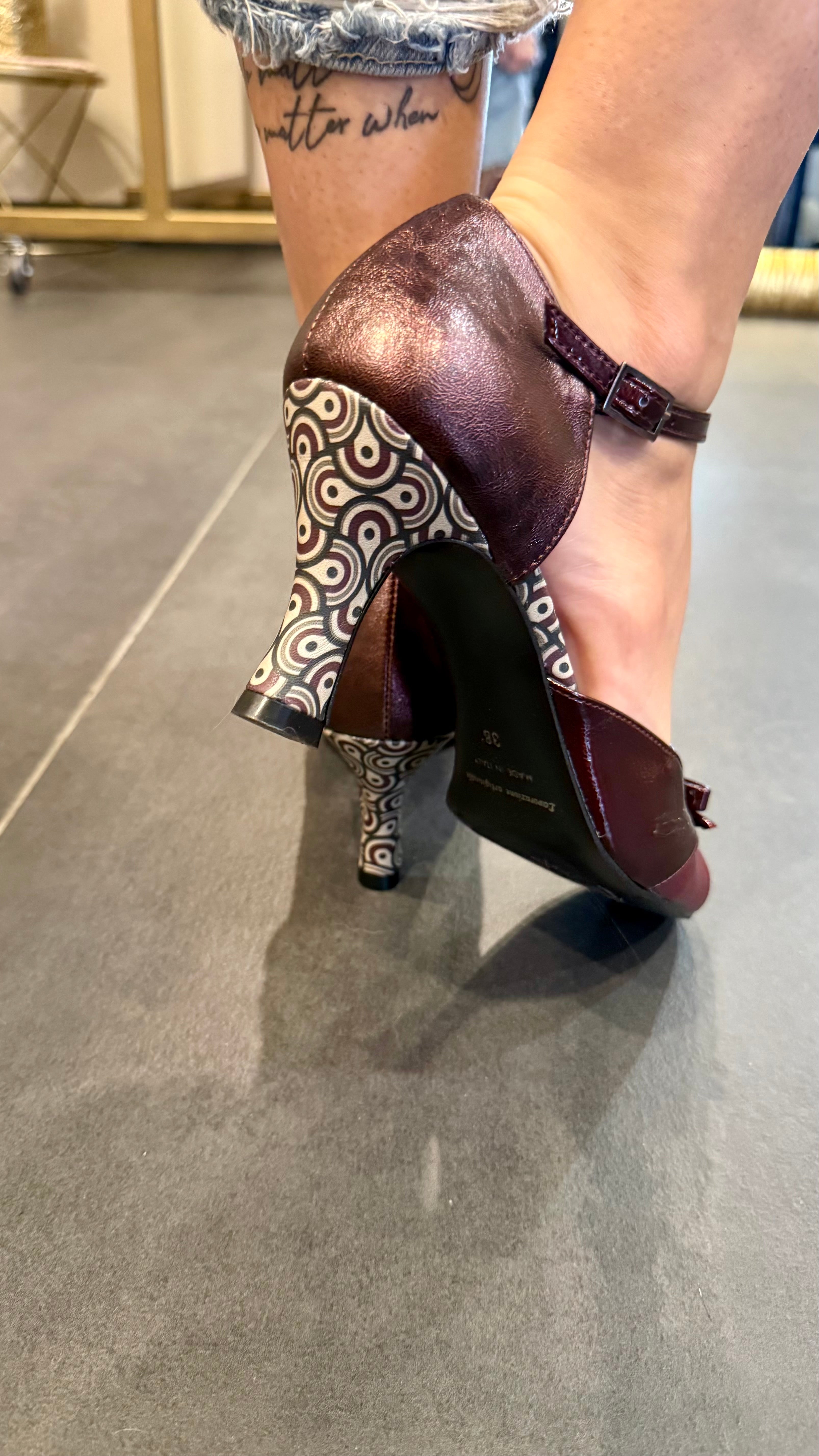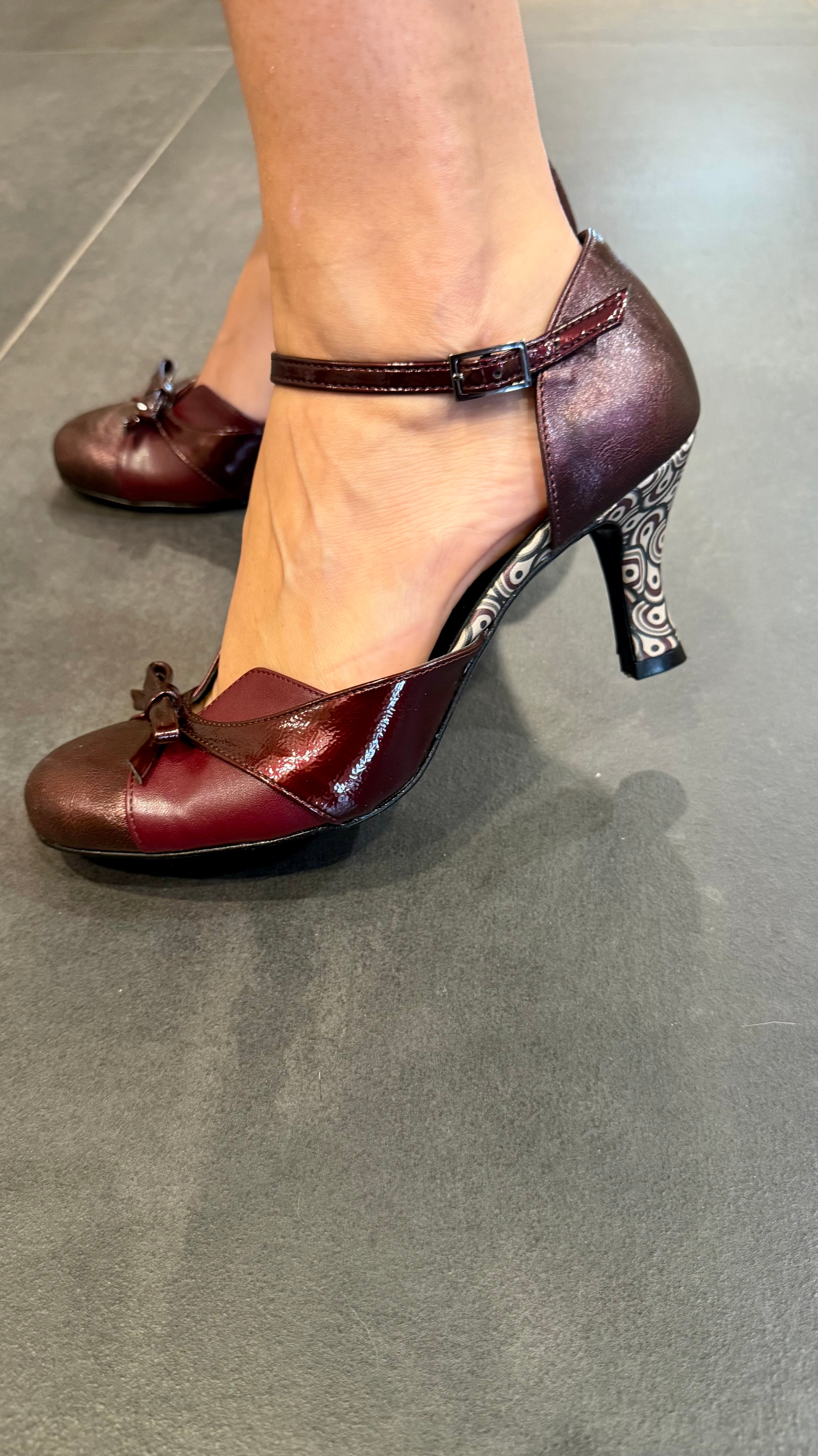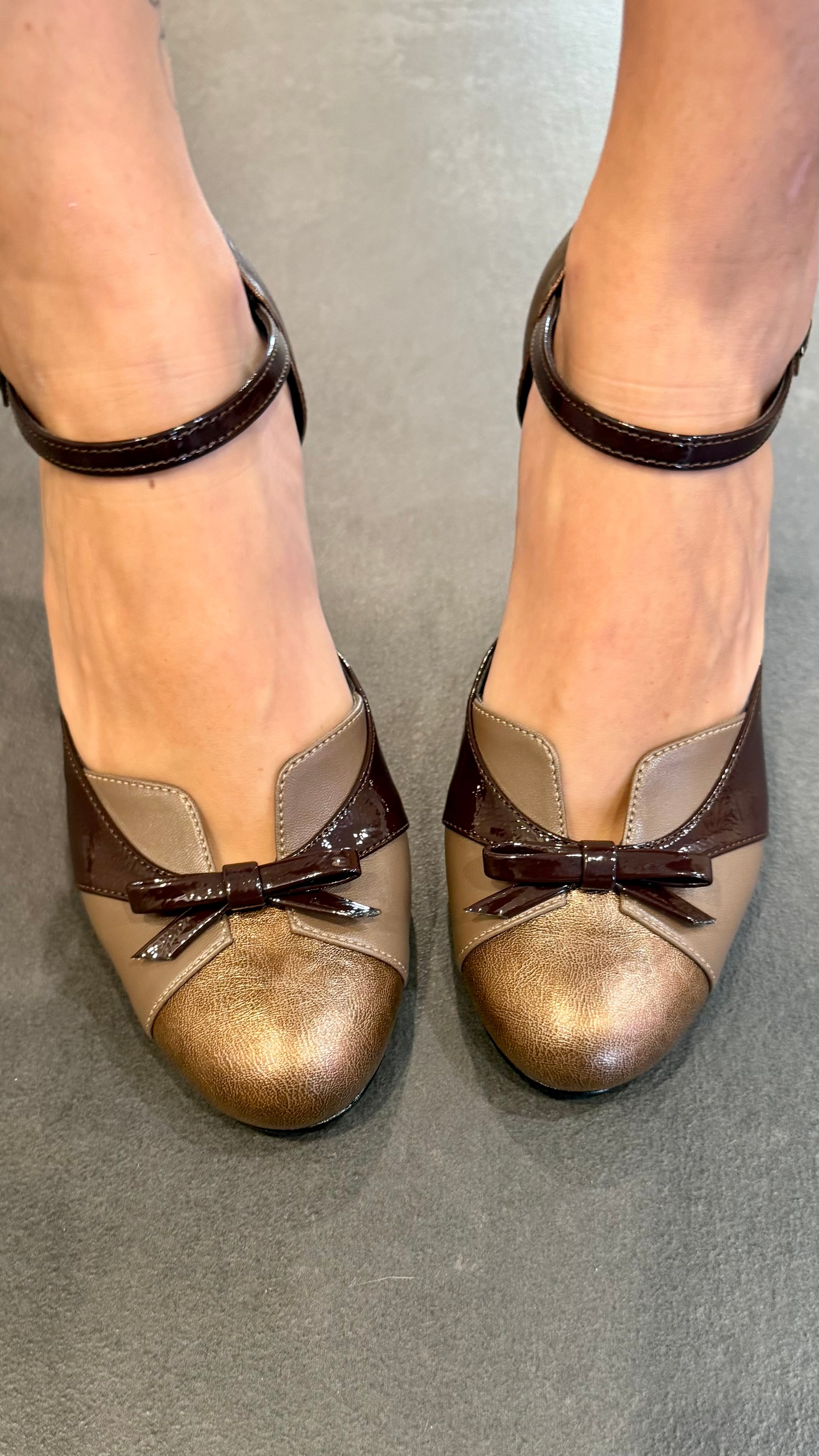 • Décolleté con fiocchetto e tacco in fantasia in vera pelle