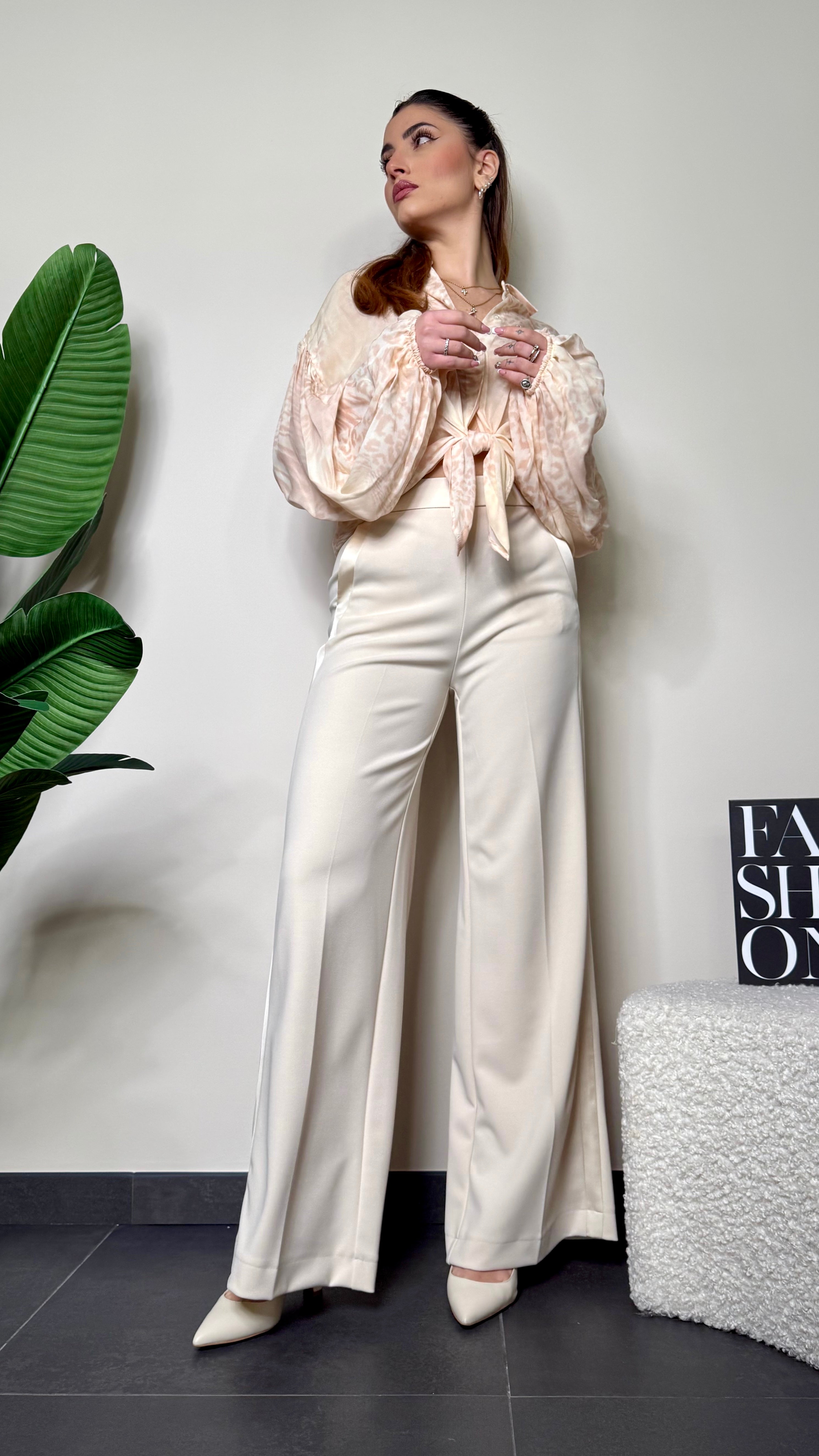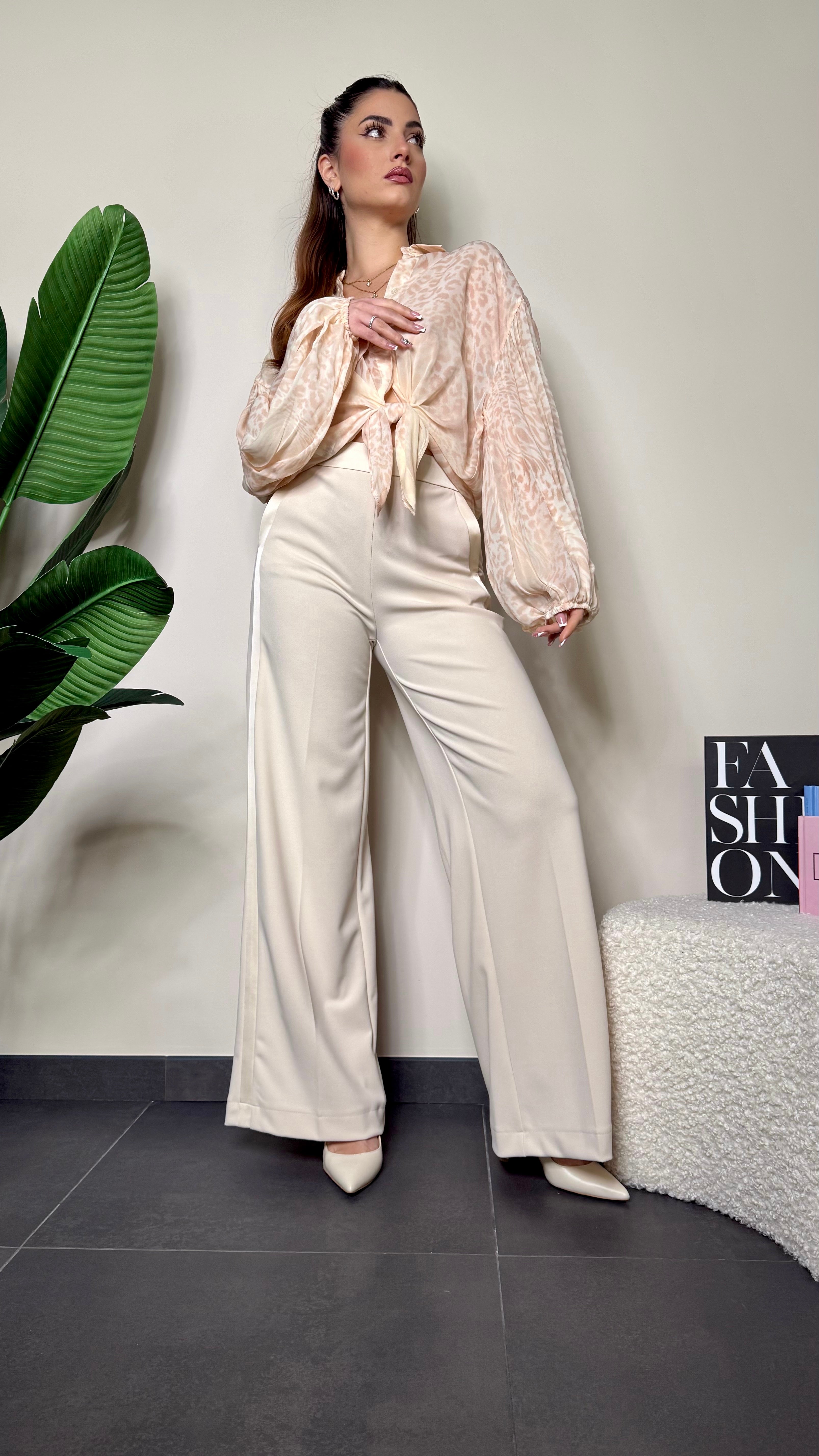Pantalone a palazzo con profili in raso e chiusura zip