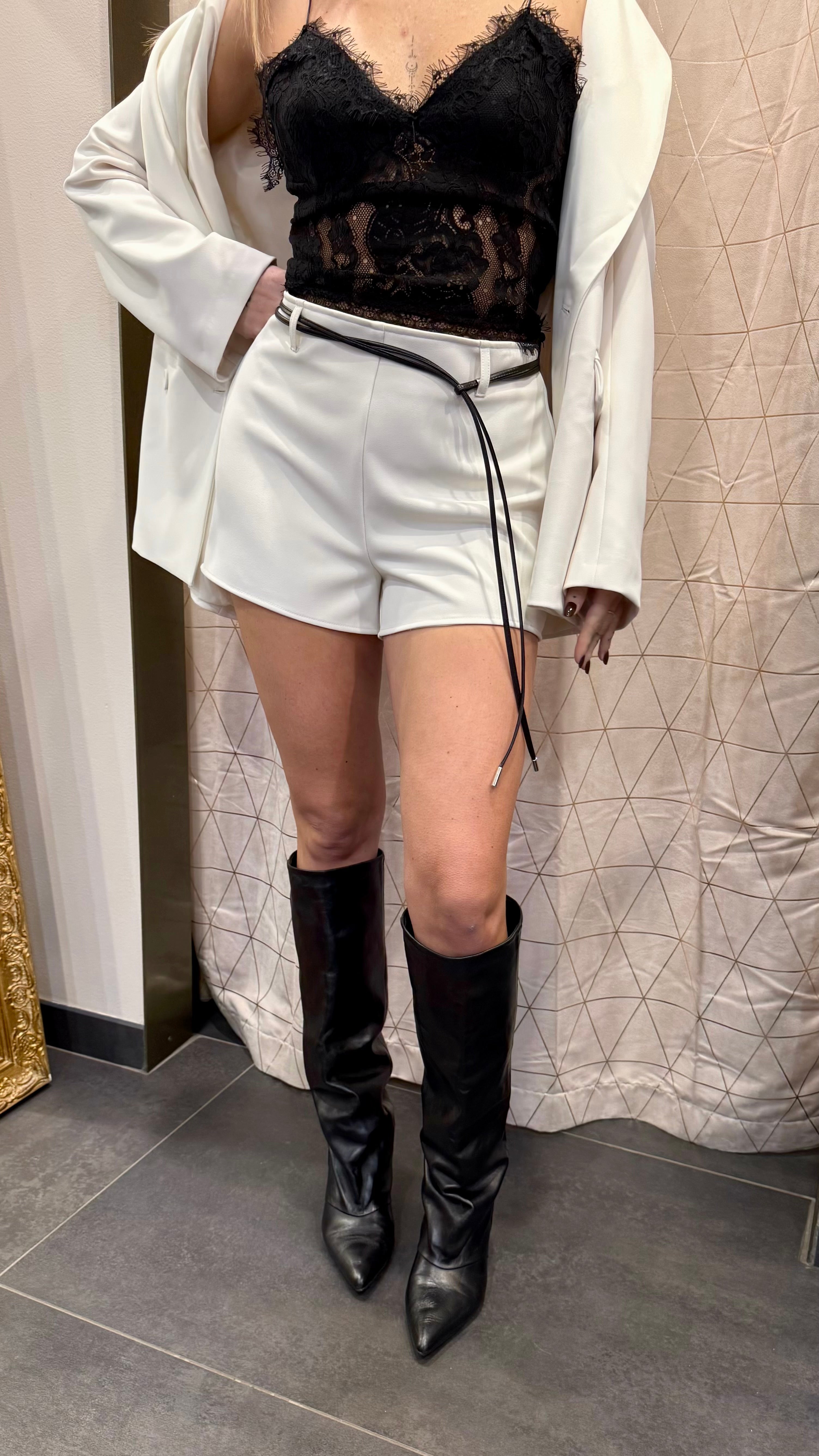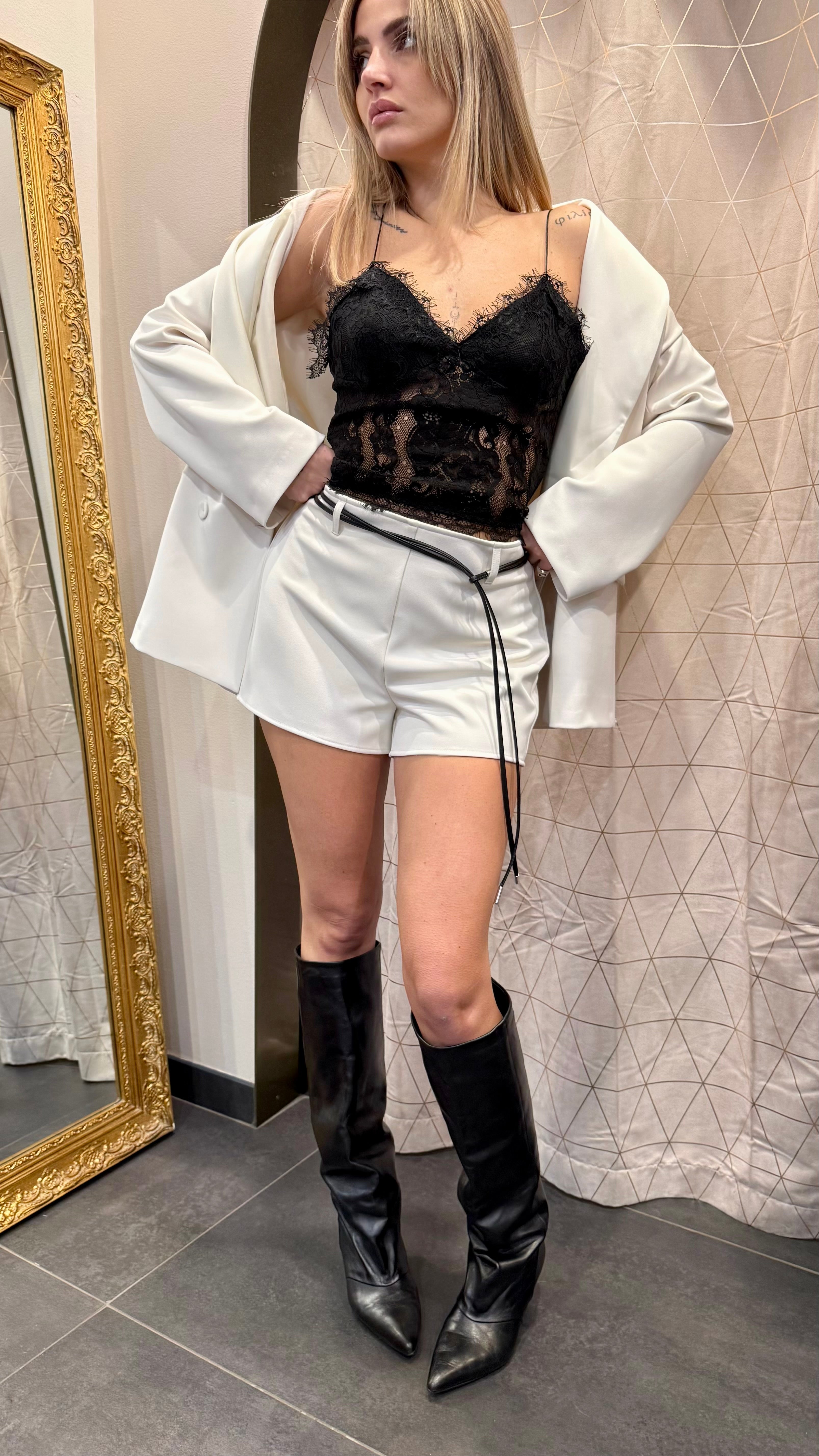 Shorts con cinturino in ecopelle e zip sul retro