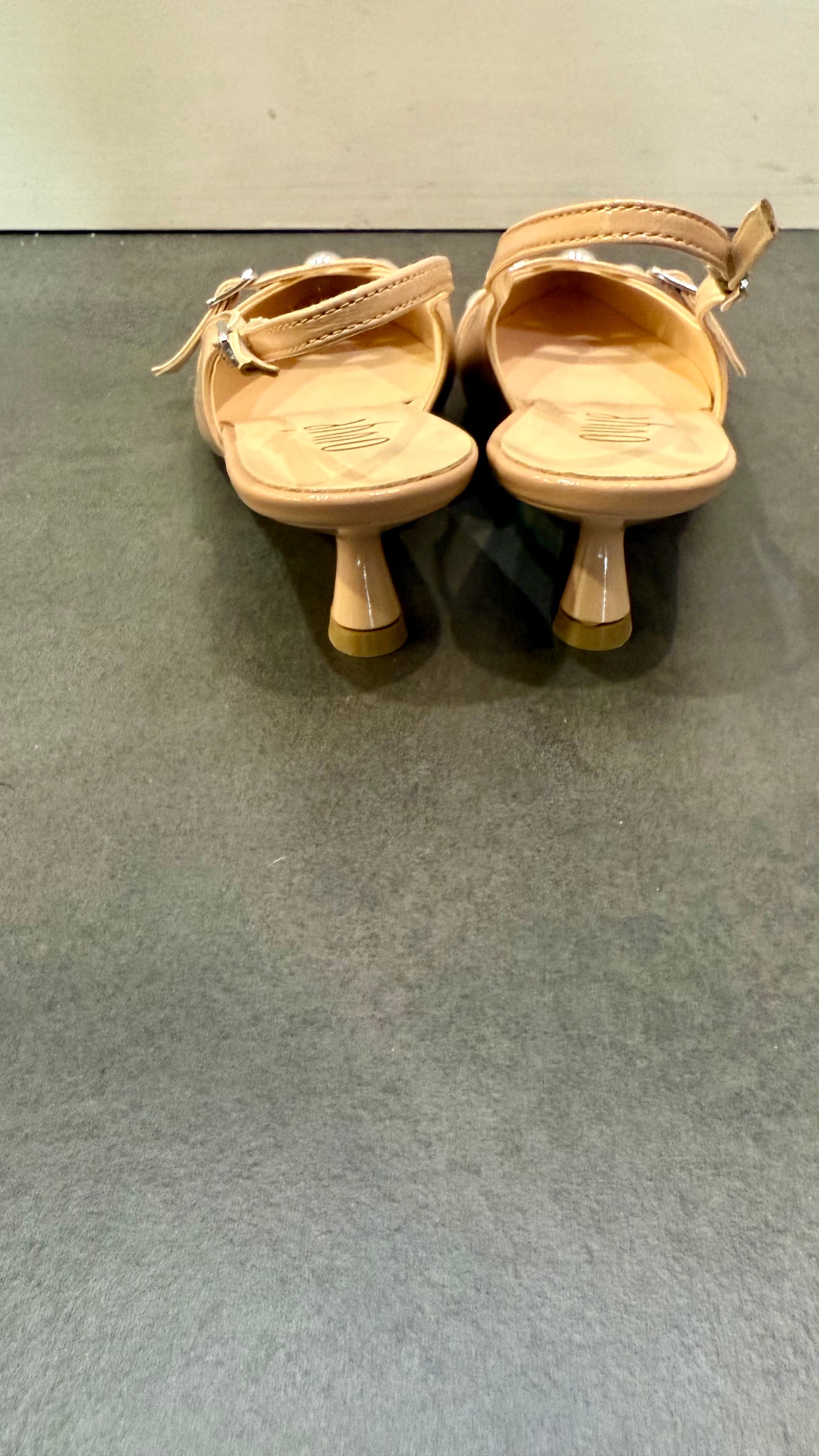 Slingback tacco basso in vera pelle con borchie e cinturino