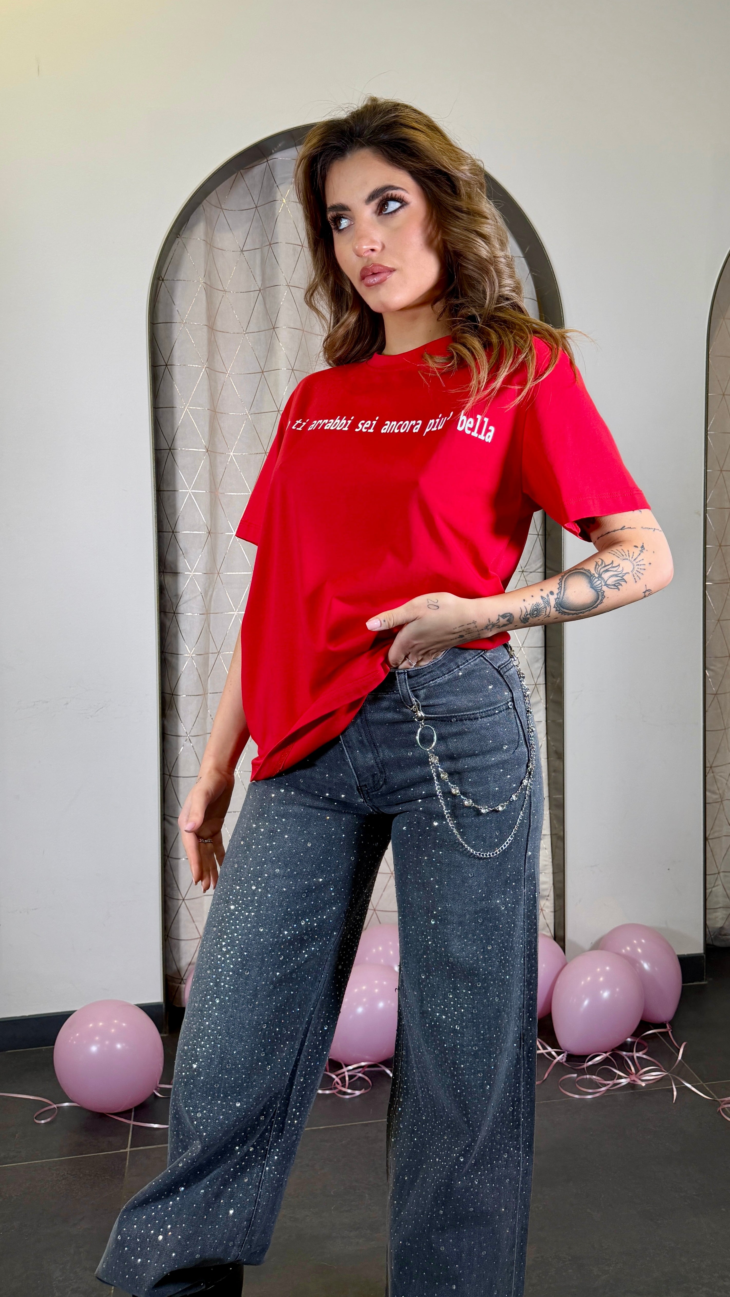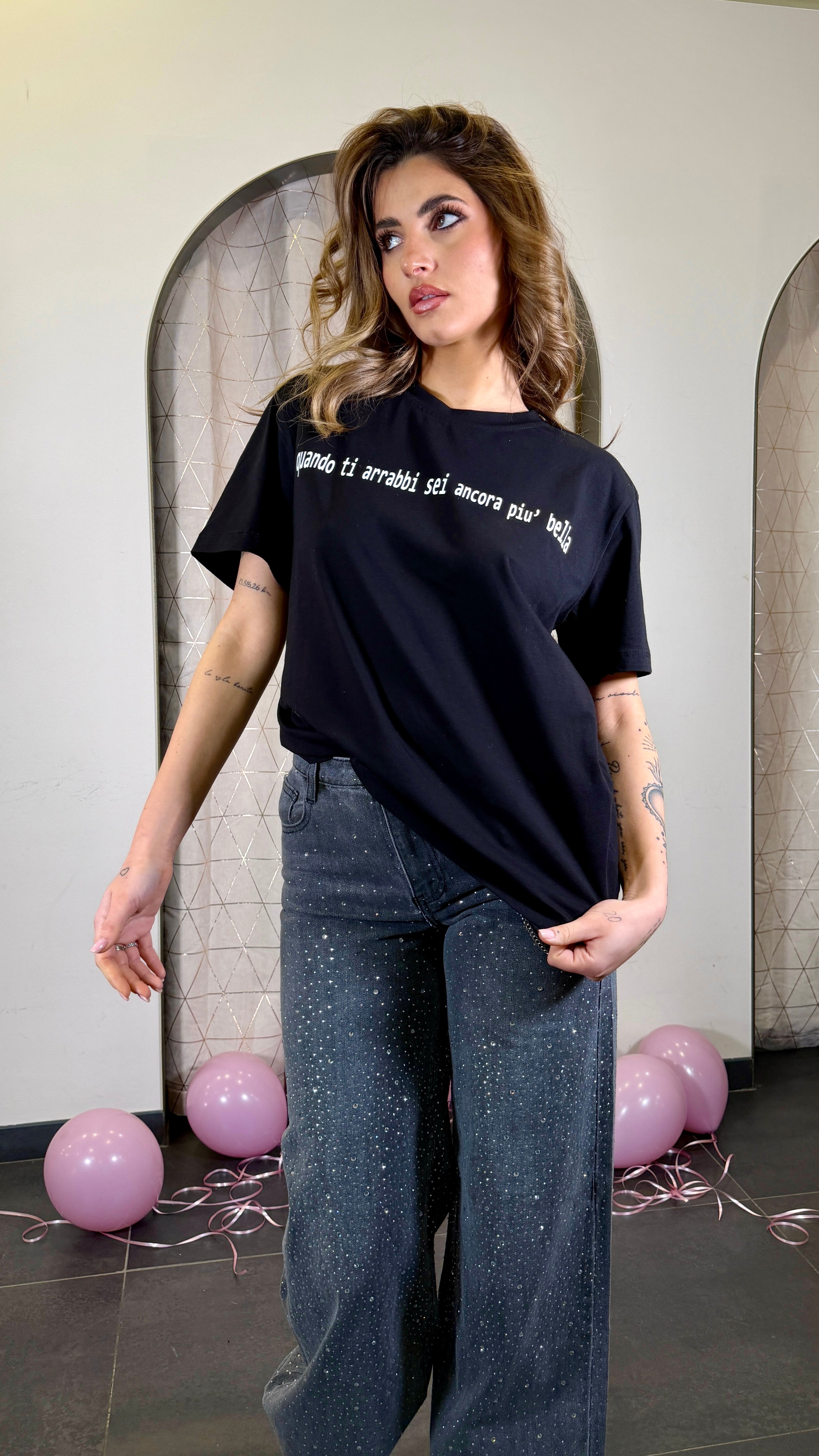 T-shirt con stampa "Quando ti arrabbi sei ancora più bella"